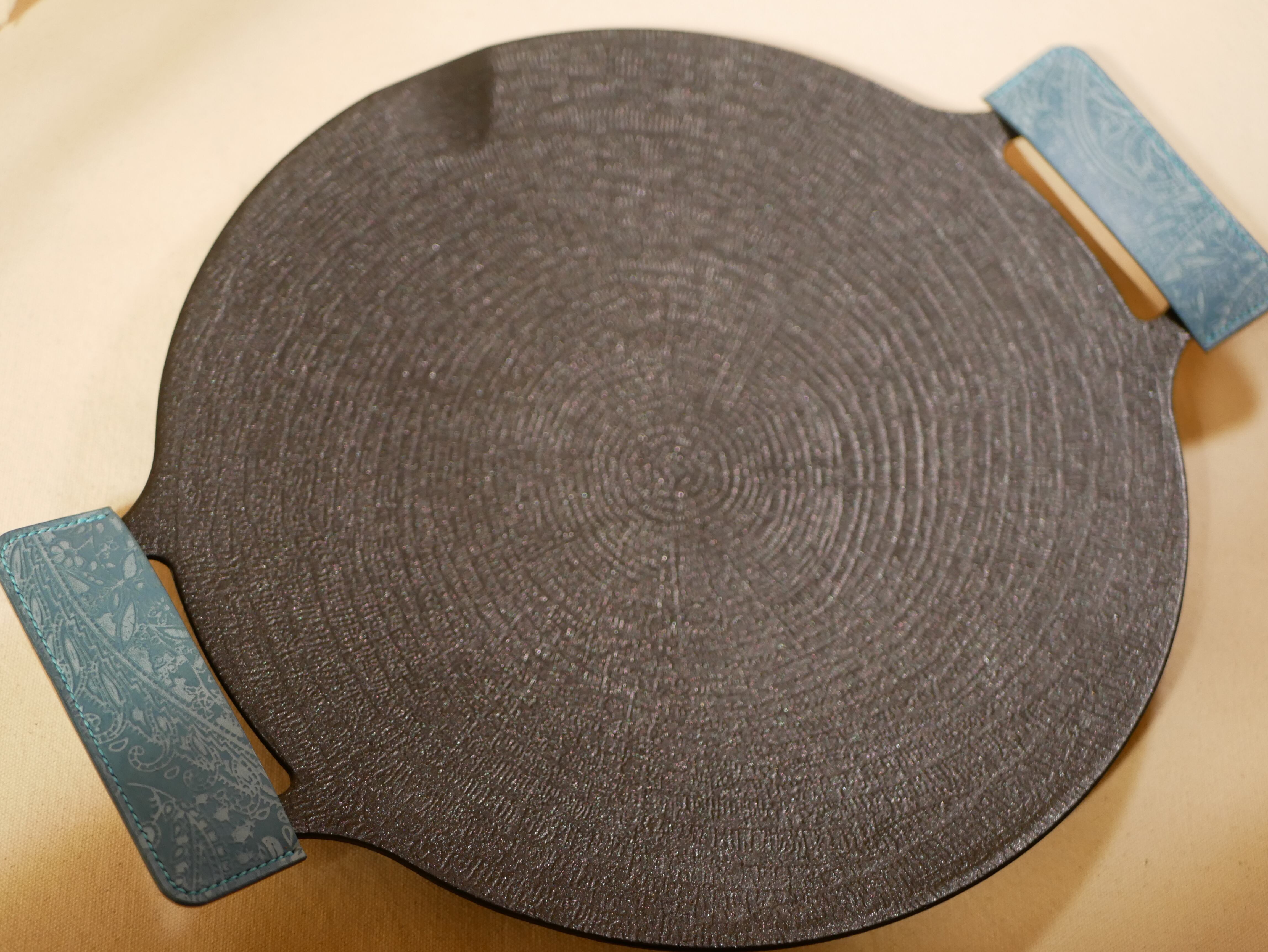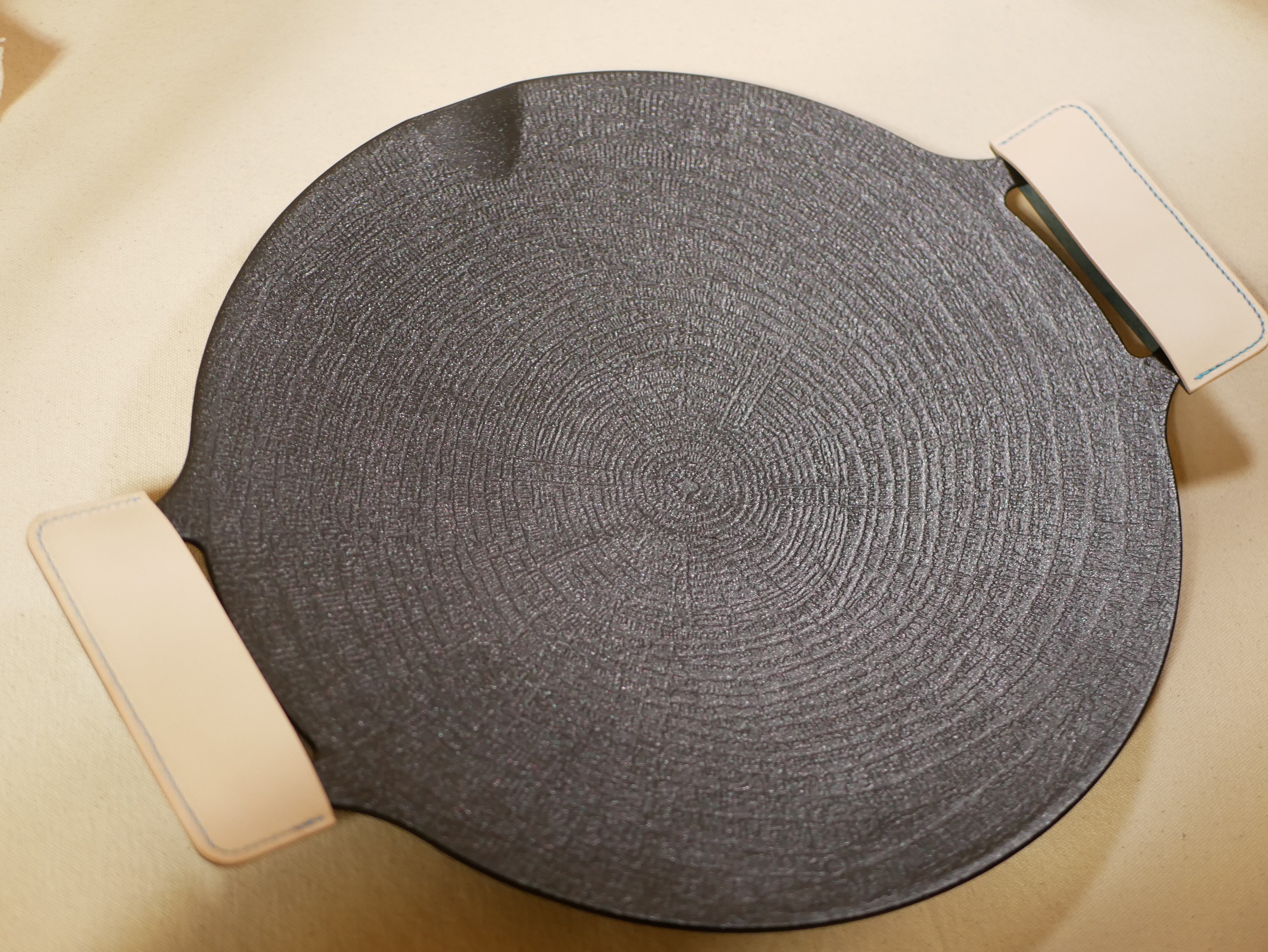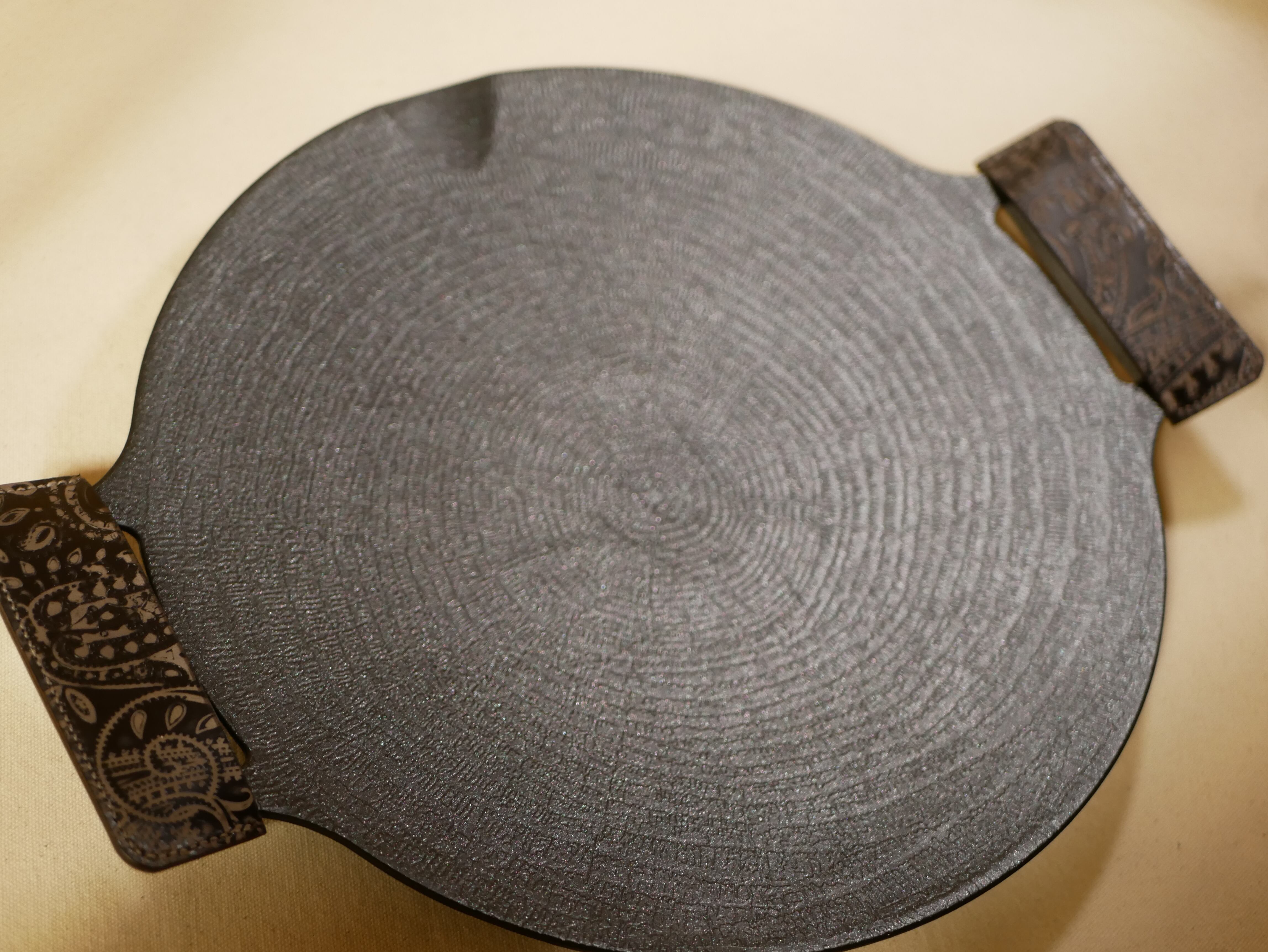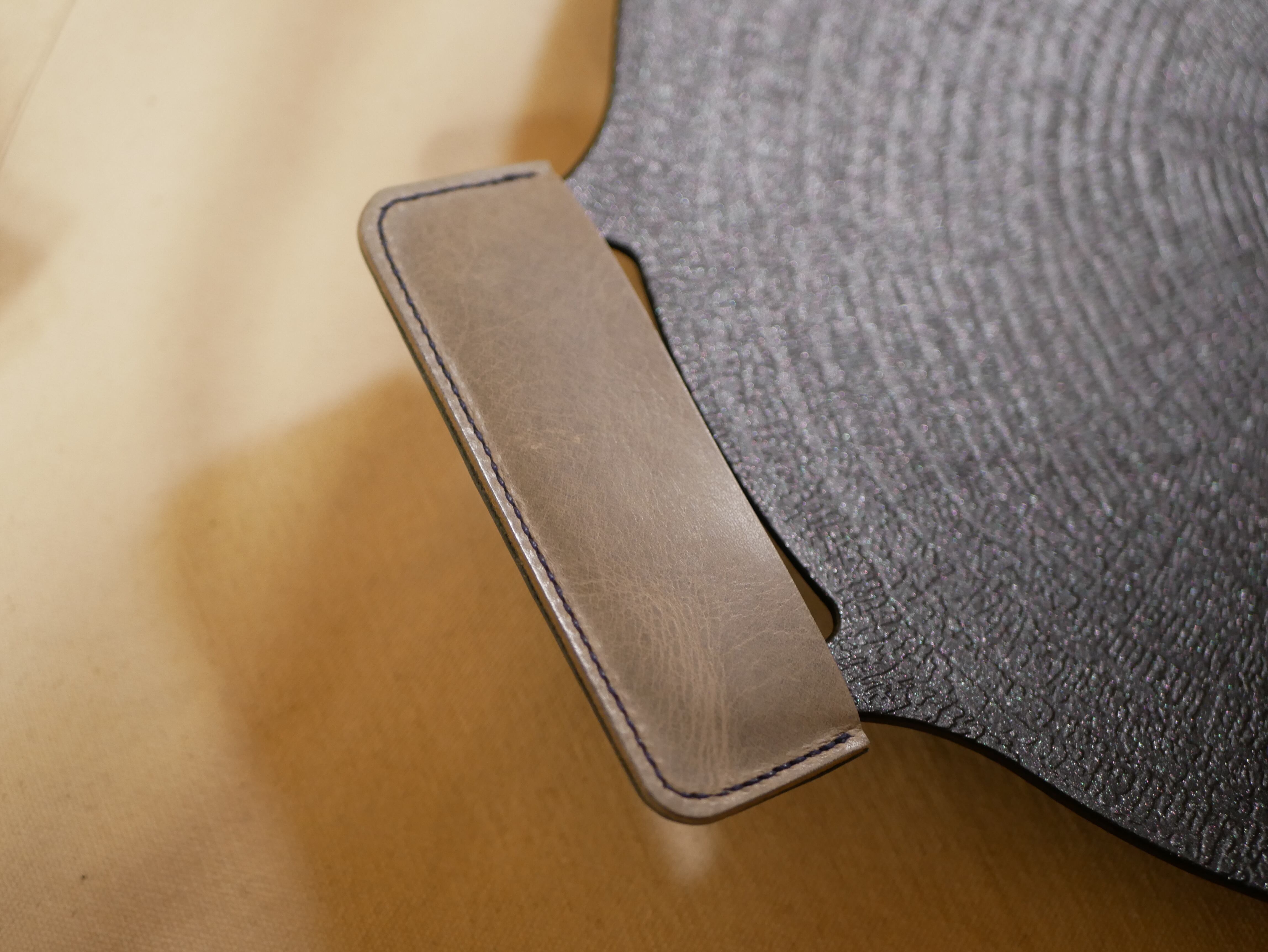 レザーで作成したマルチグリドルのハンドルカバーです。