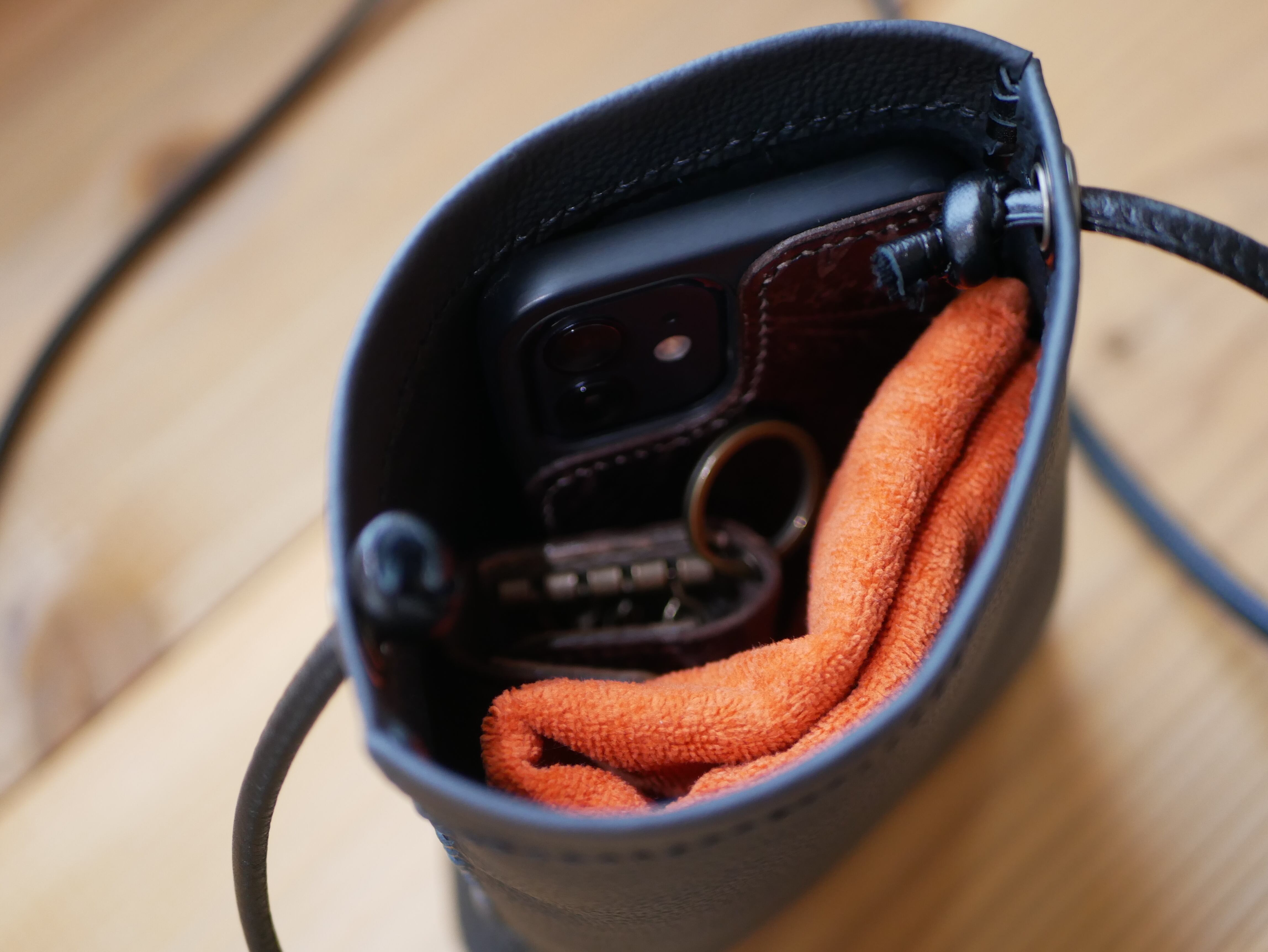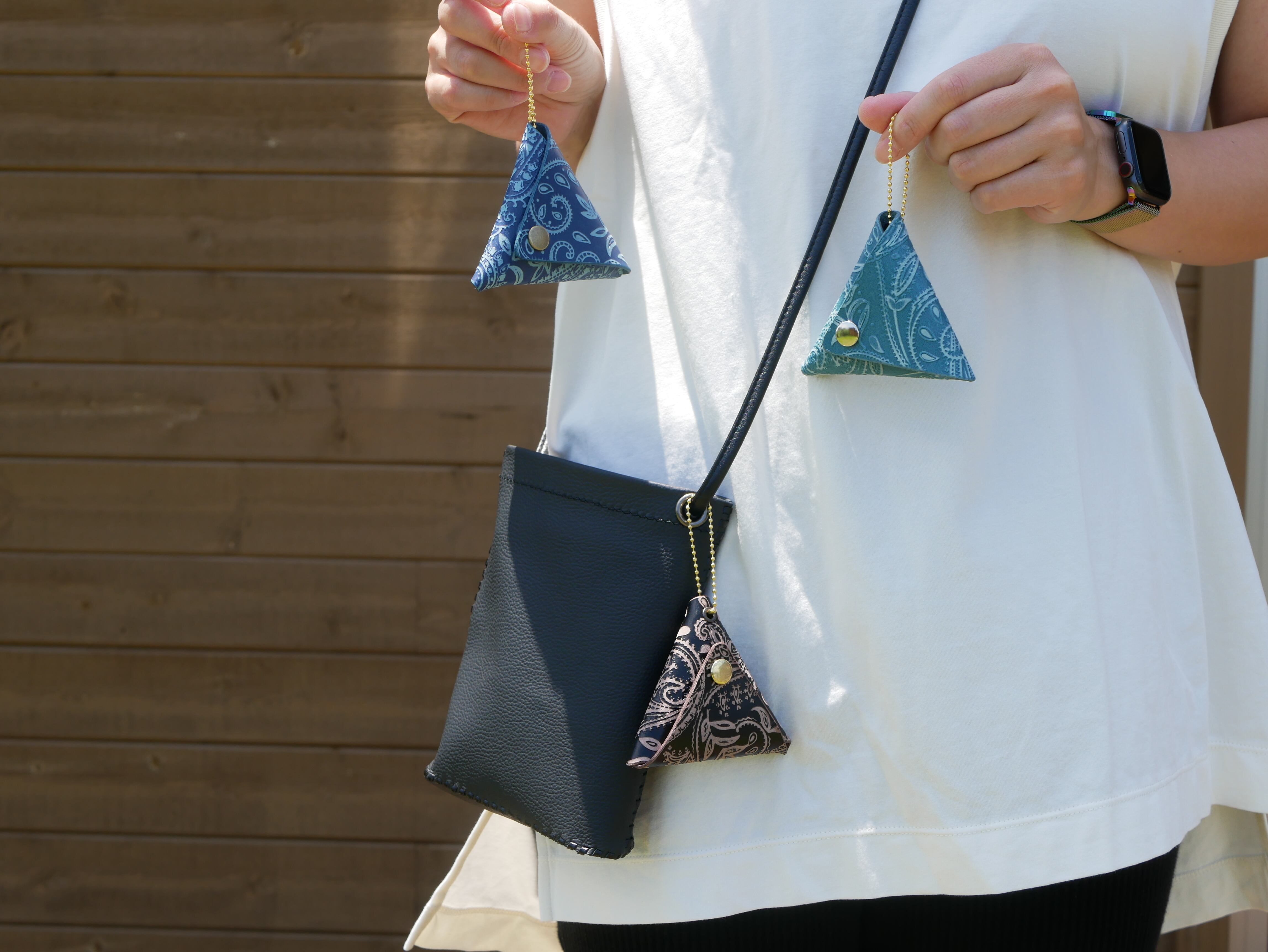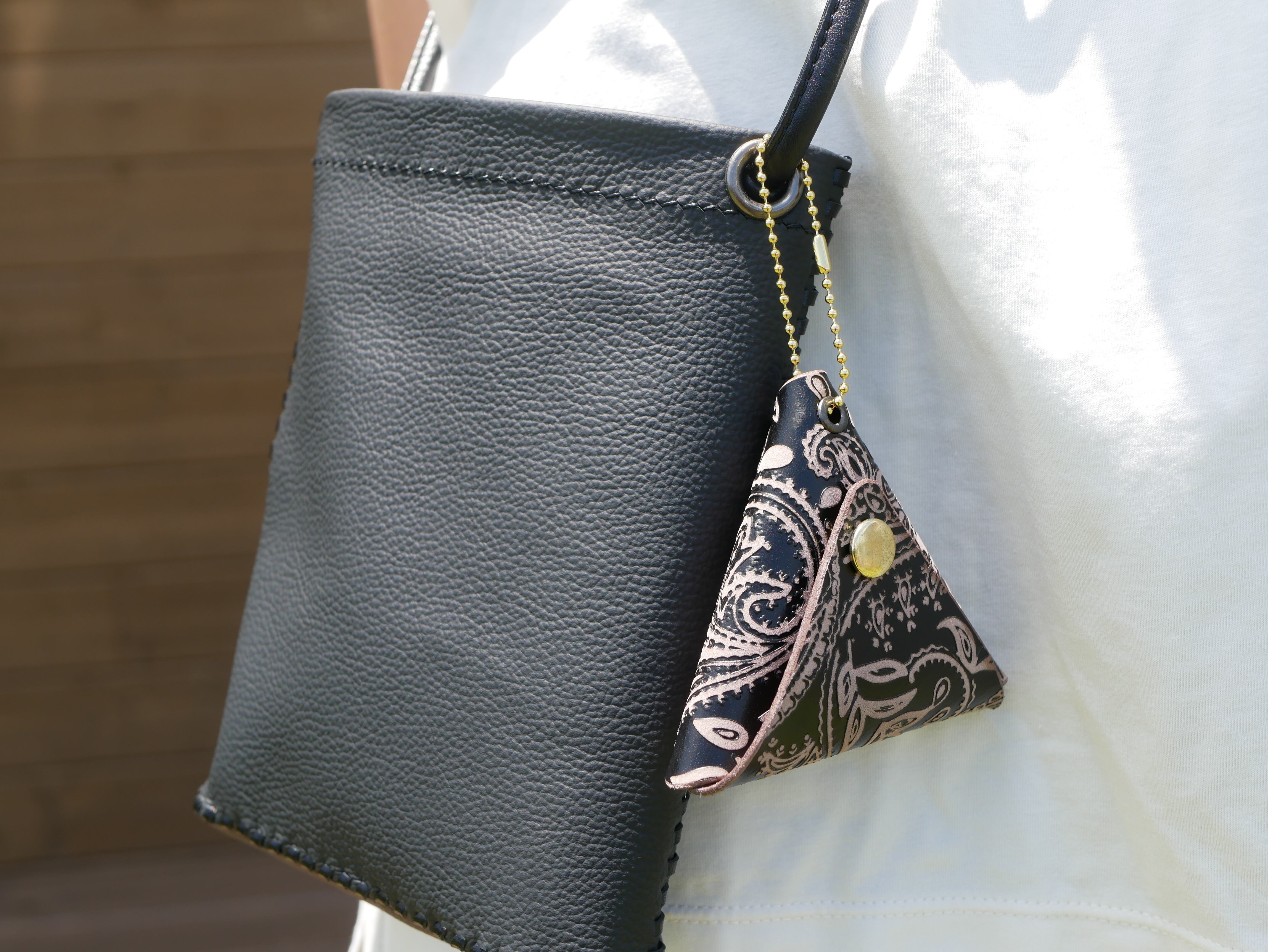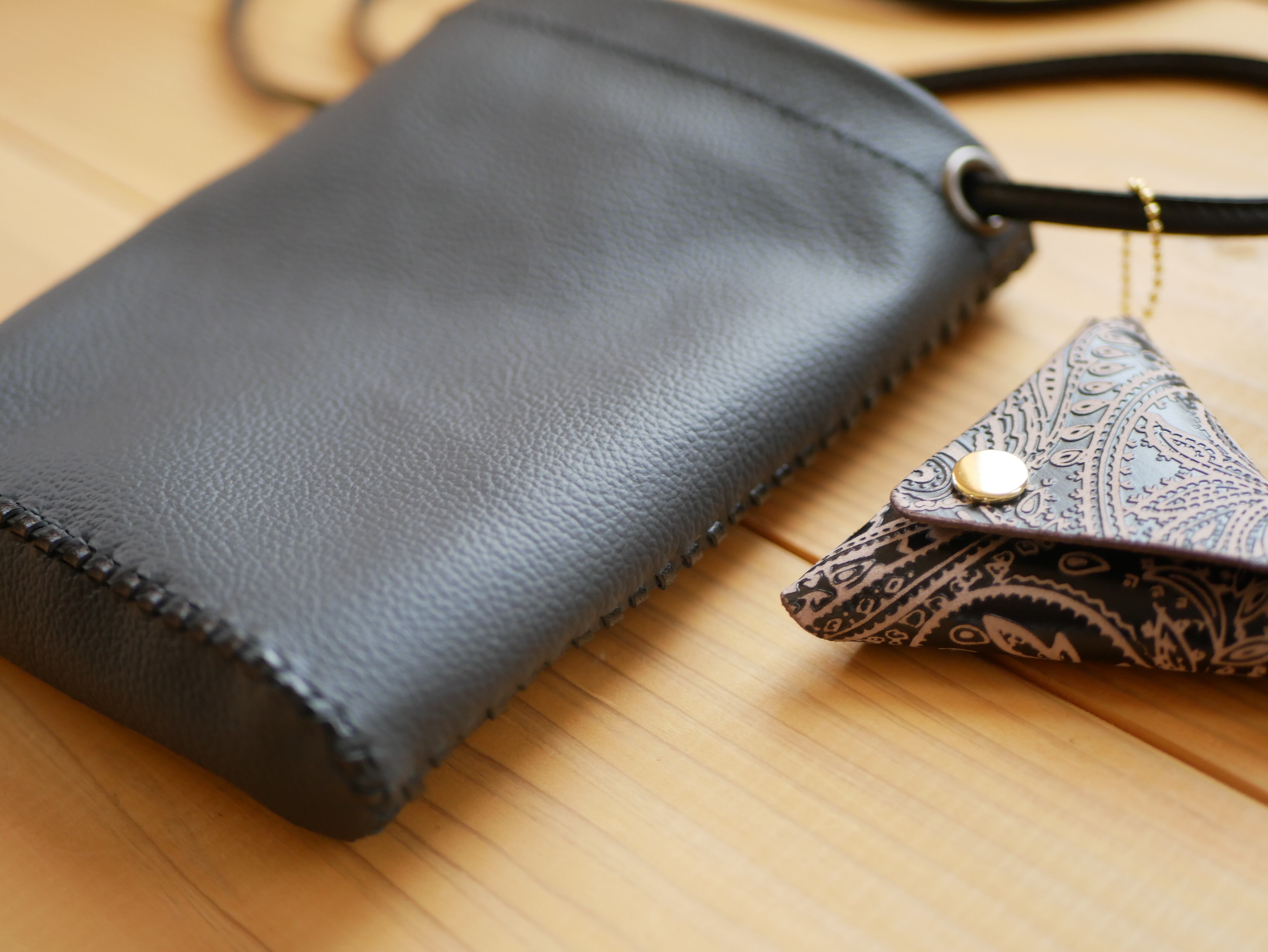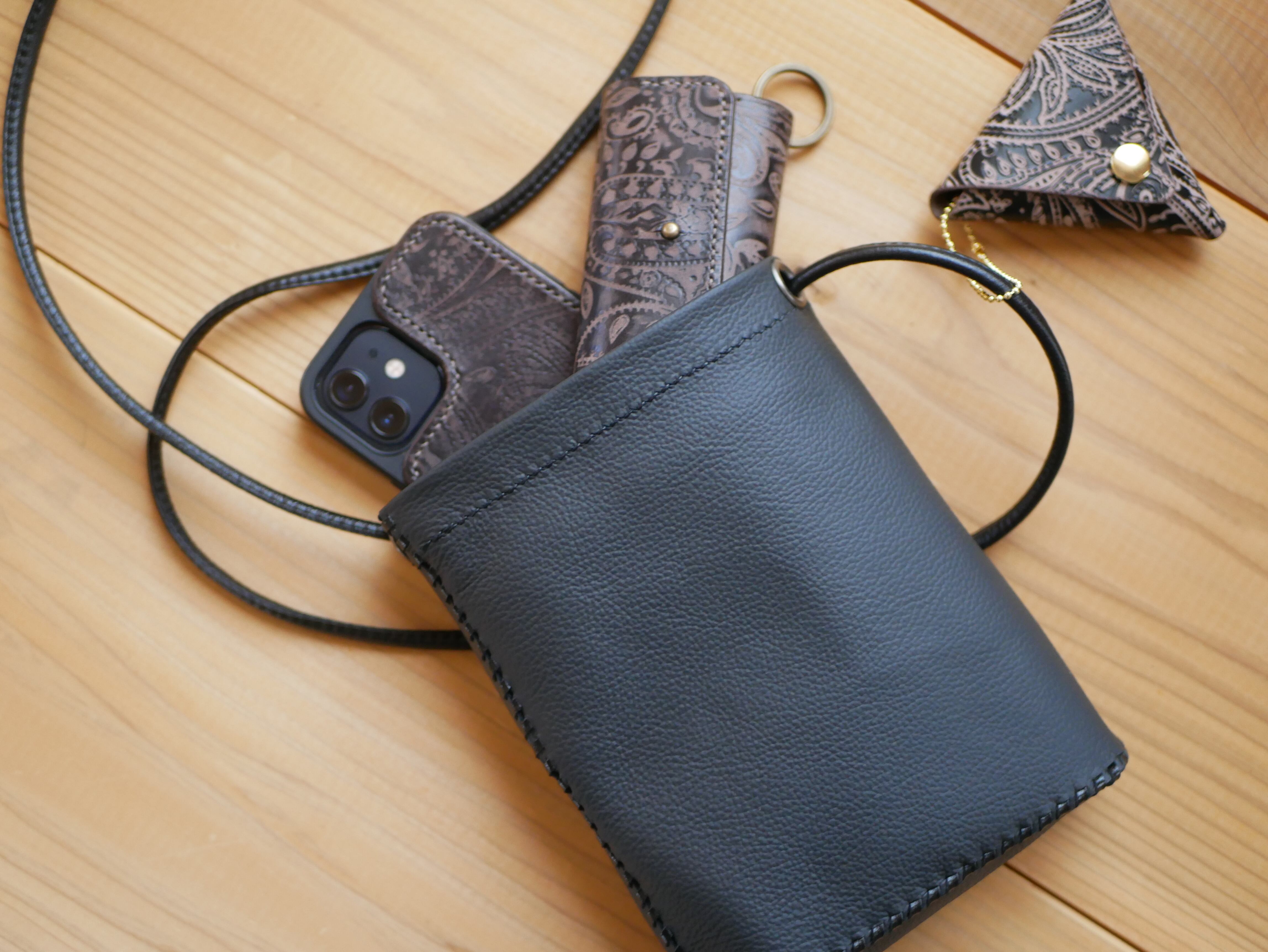 スマートフォン、キーケース、ハンカチを収納するのに丁度いいサイズ感で、外出先でも手軽に使用できます。また、取り外し可能なコインケースも付いています。コインケースは3色展開しておりますのでお好きな色をお選びください。