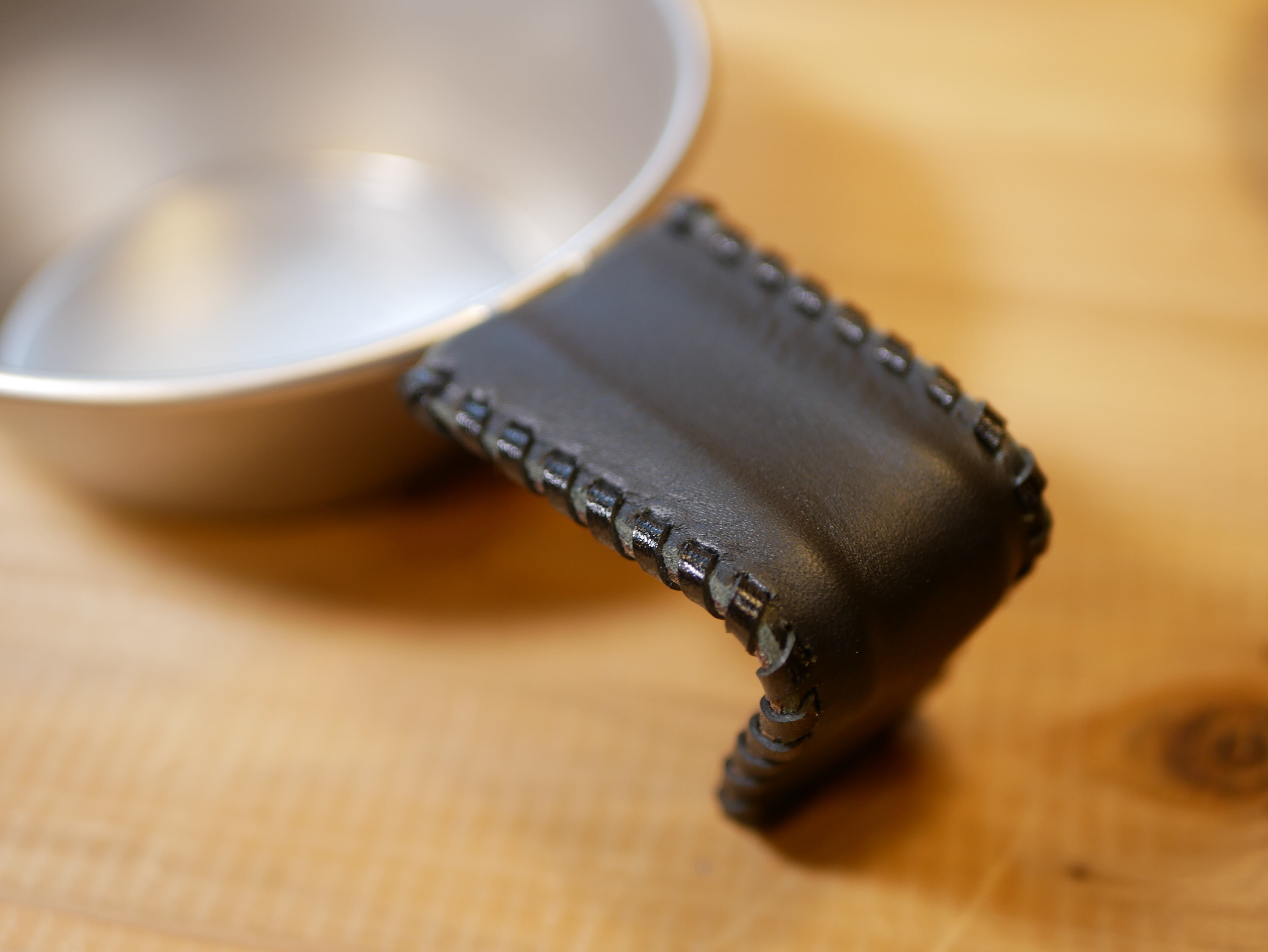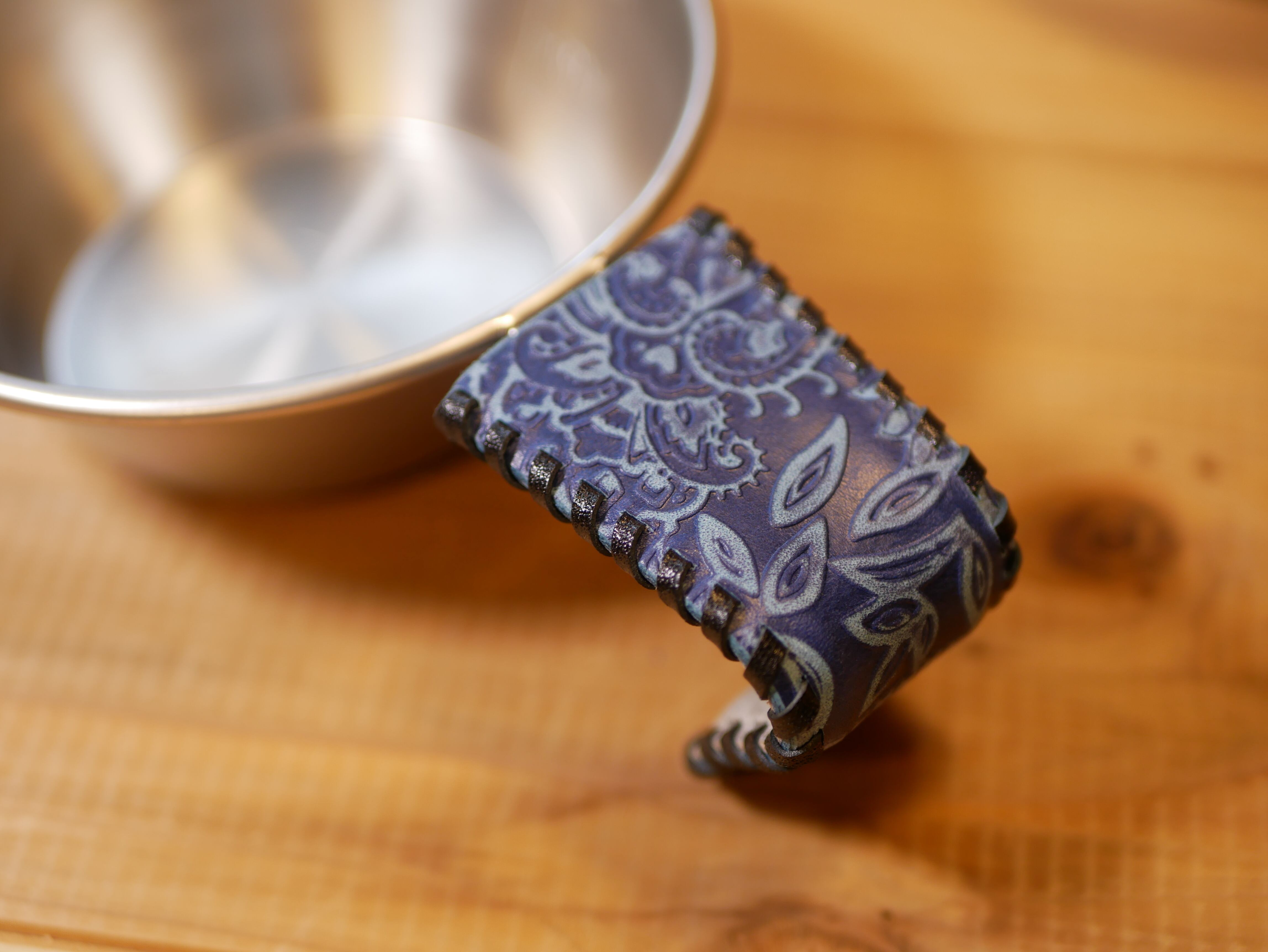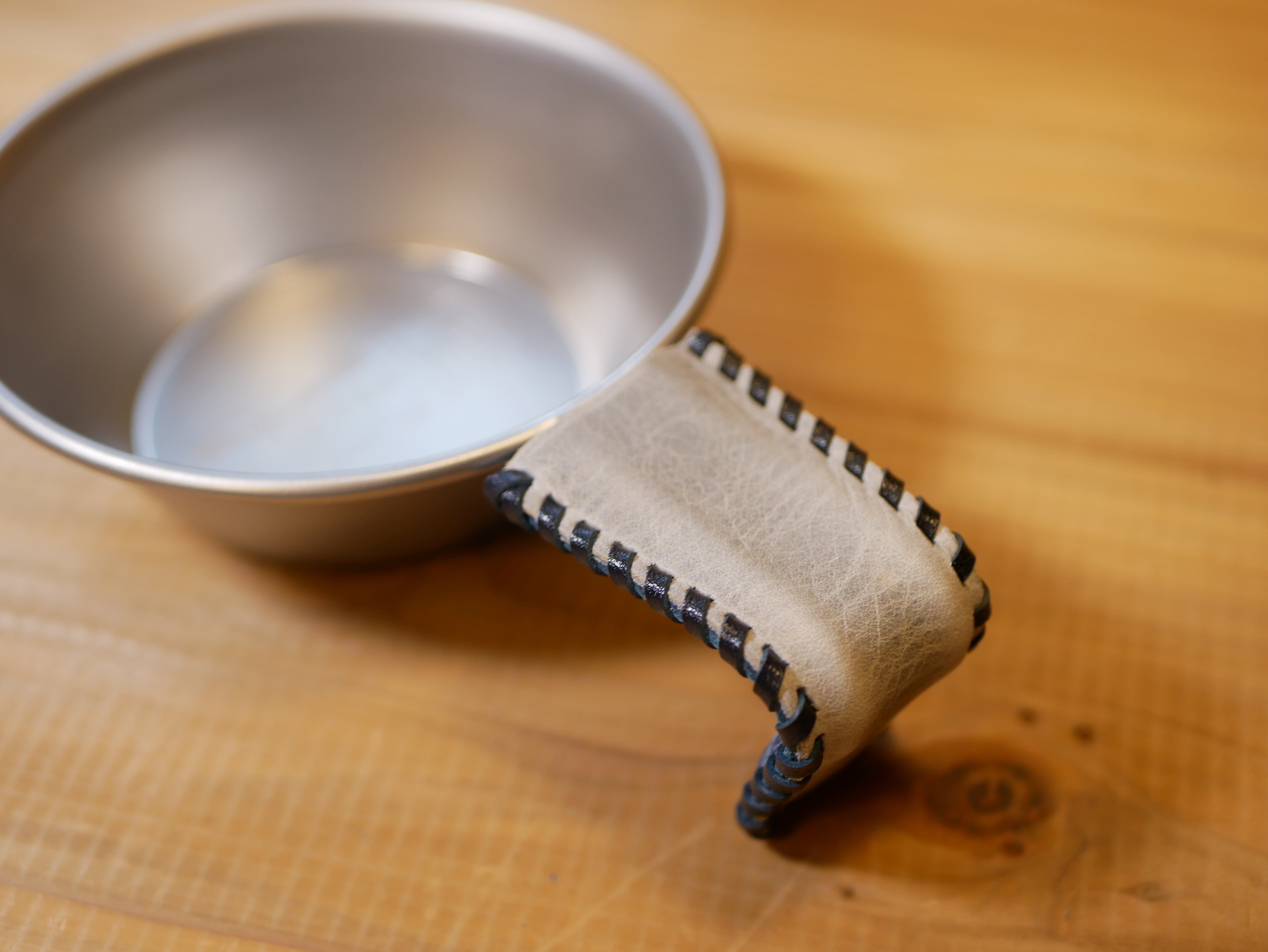 ペイズリー柄レザーで作成したシェラカップのハンドルカバーです。