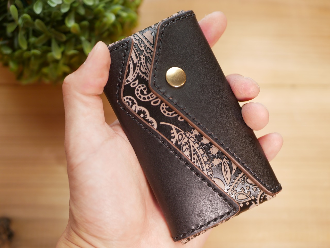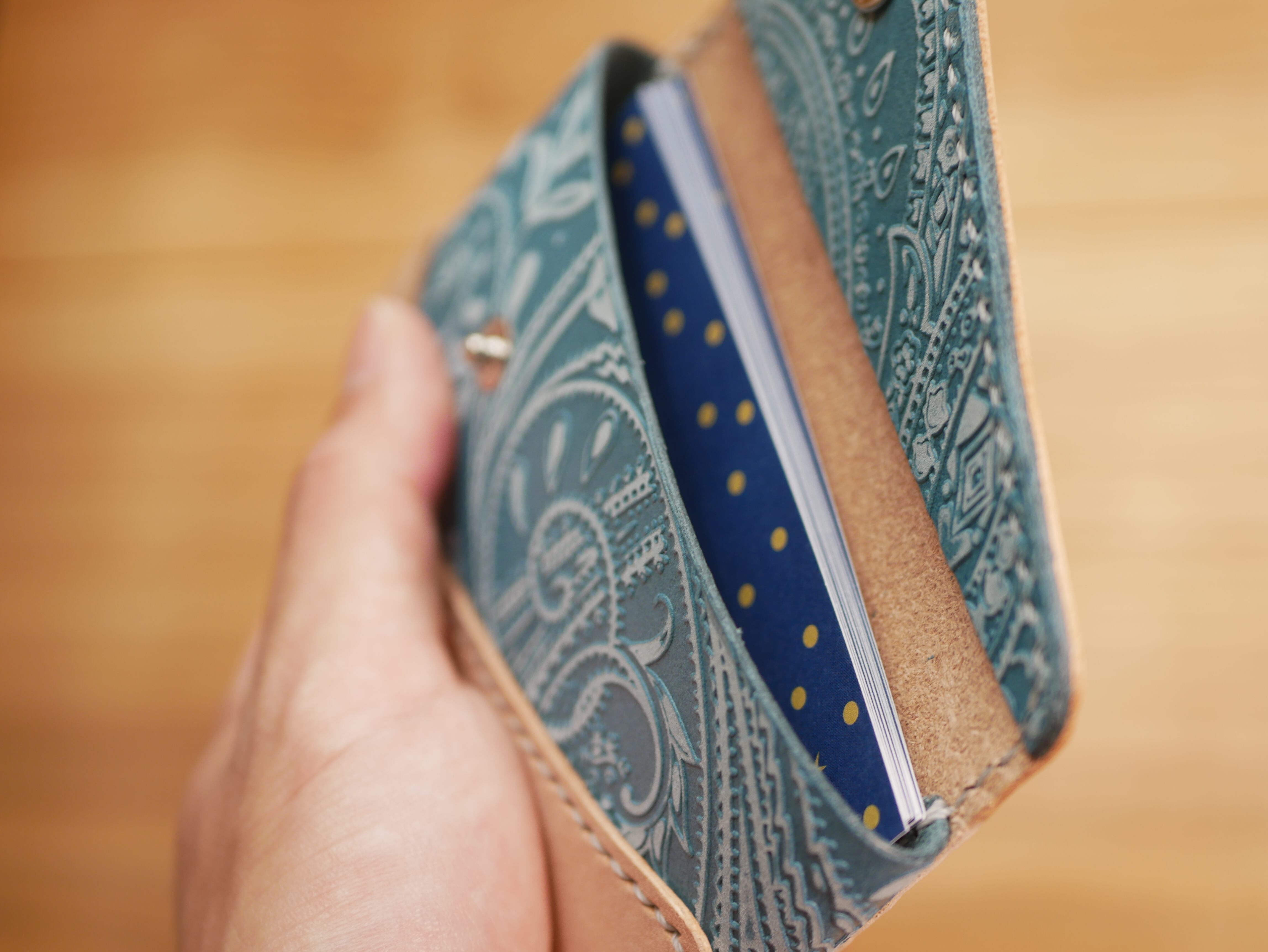 ペイズリー柄部分:国産ヌメ革にペイズリー柄を型押しした本革