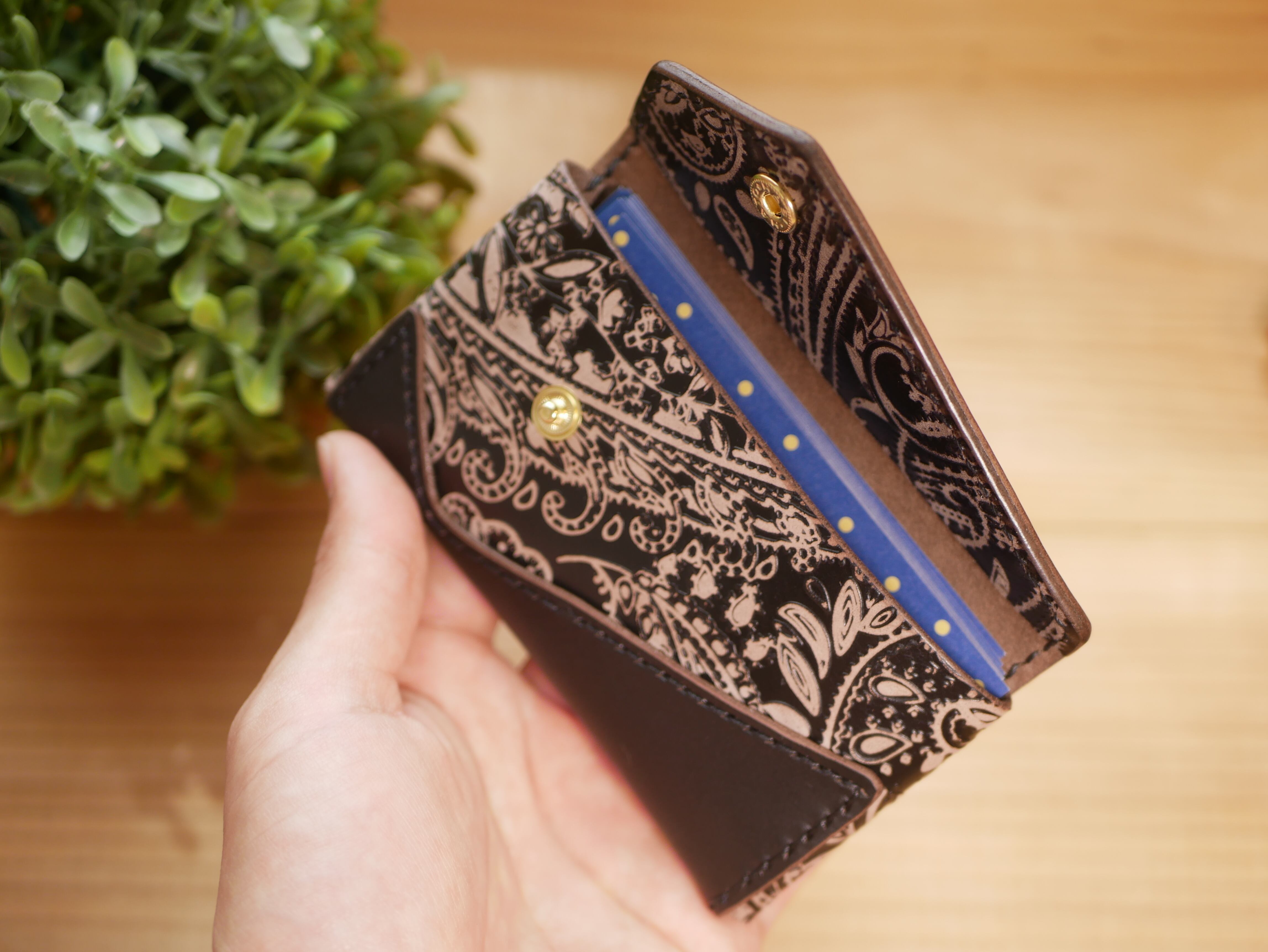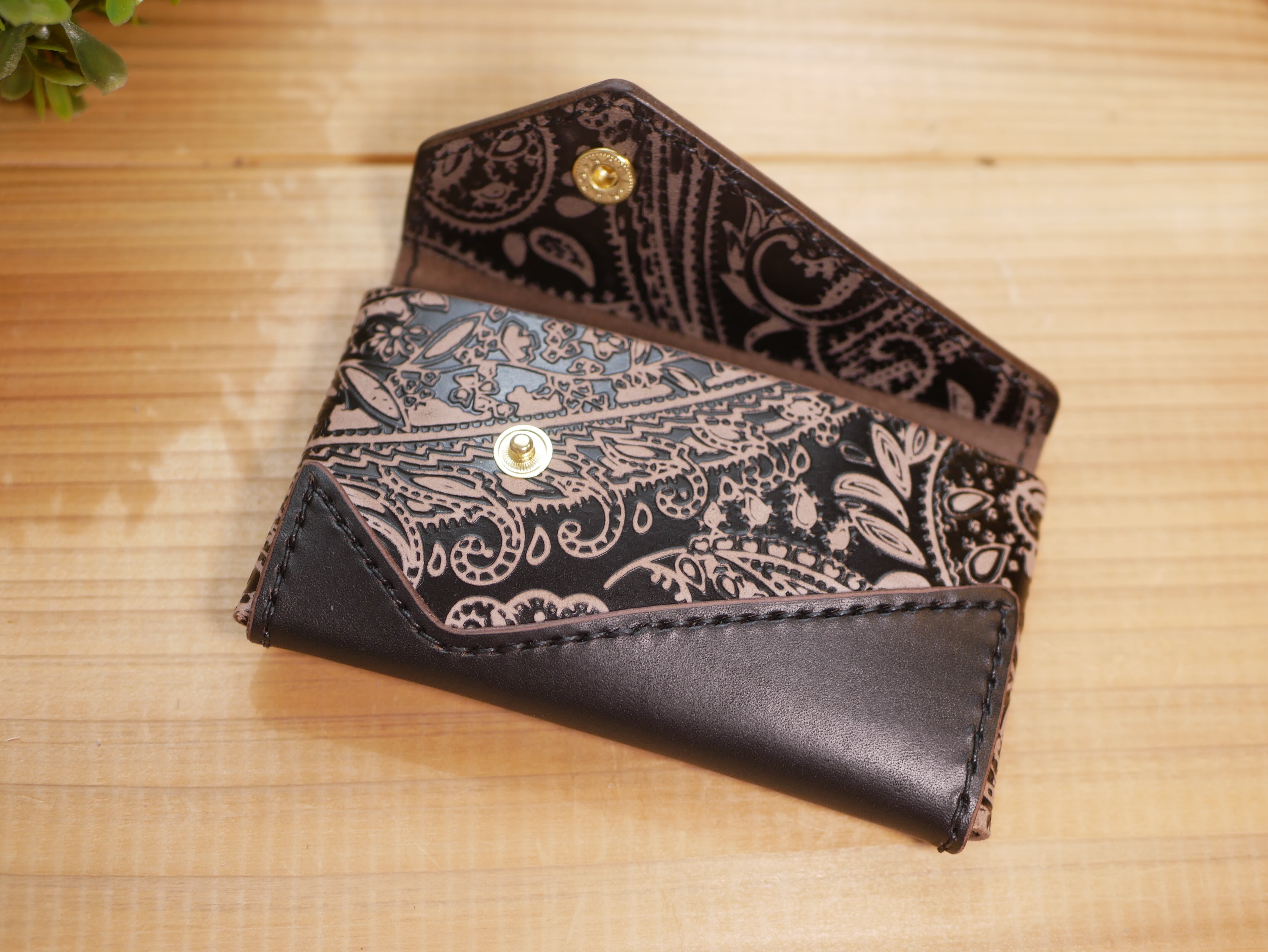 ペイズリー柄の本革でできたシンプルで上品なデザインの名刺入れです。