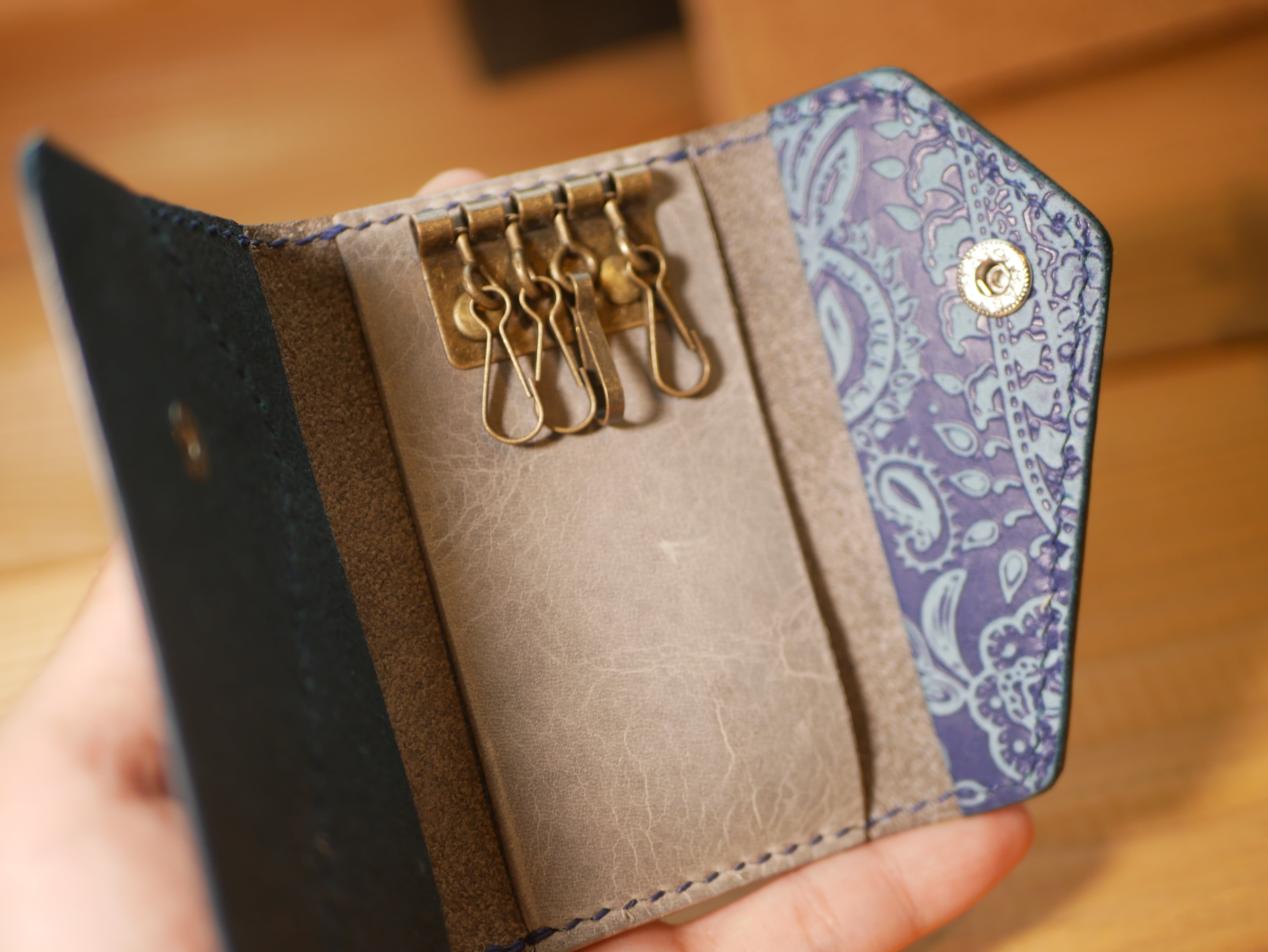ペイズリー柄の本革でできたキーケースです。
