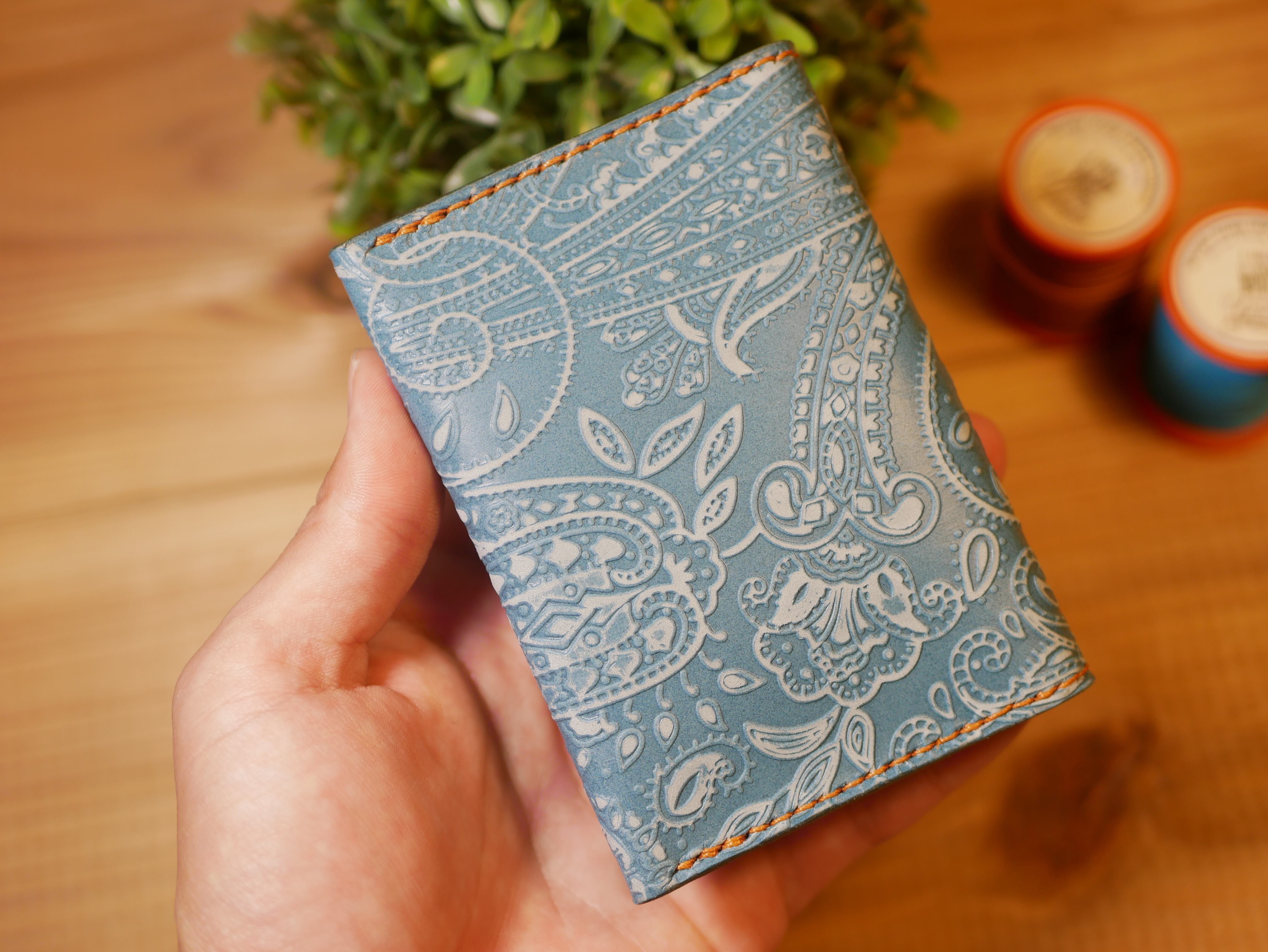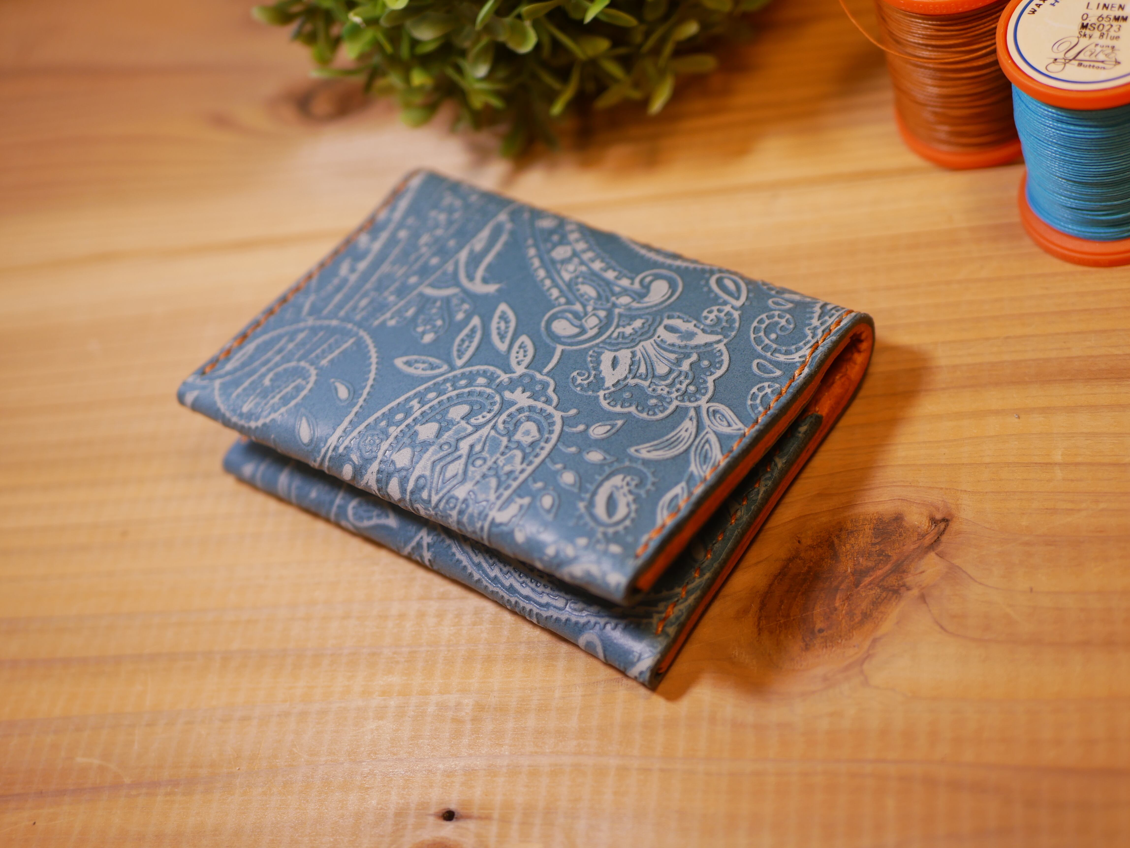 ペイズリー柄の国産革とイタリアンレザーでできたカードケースです。