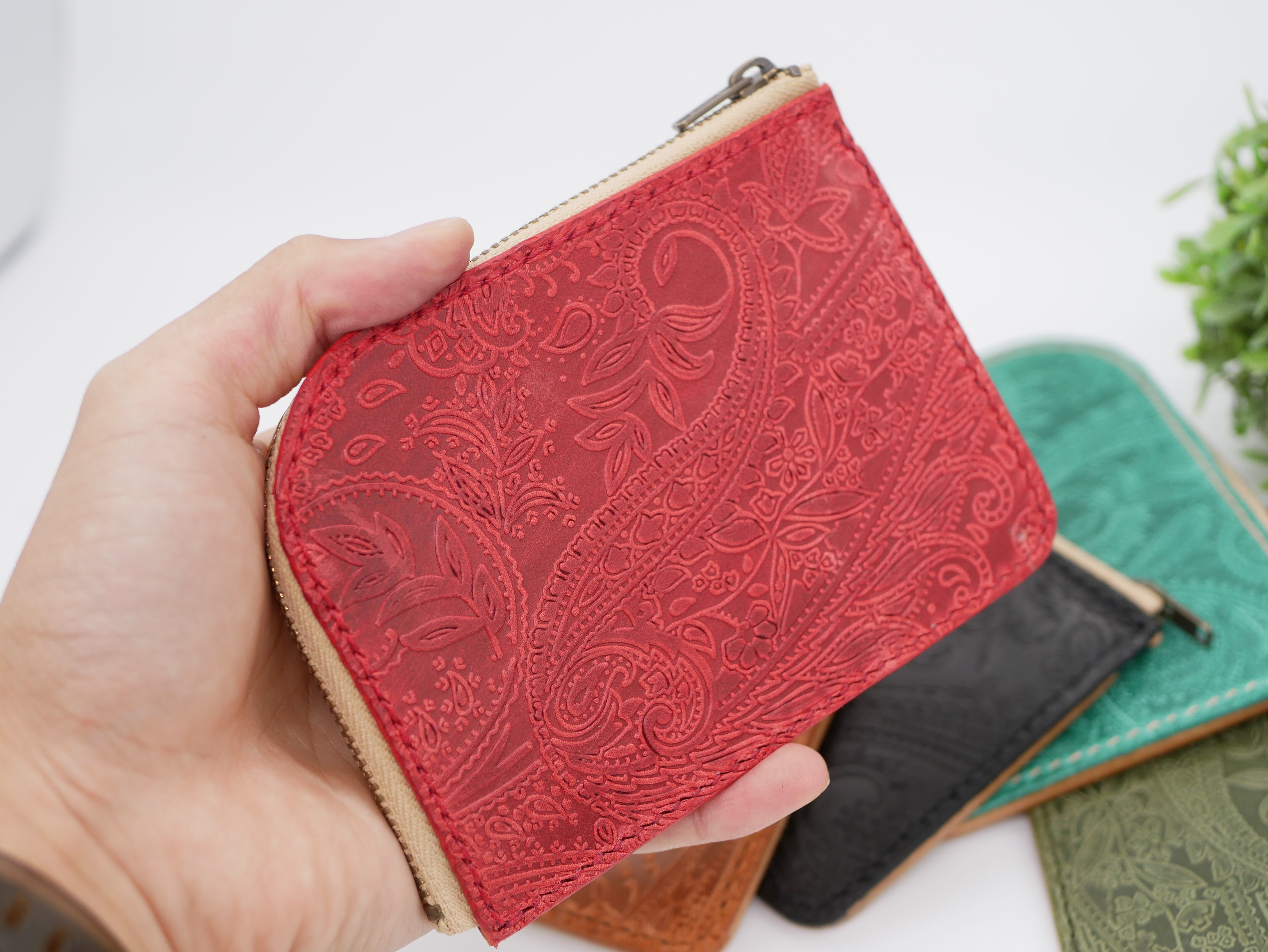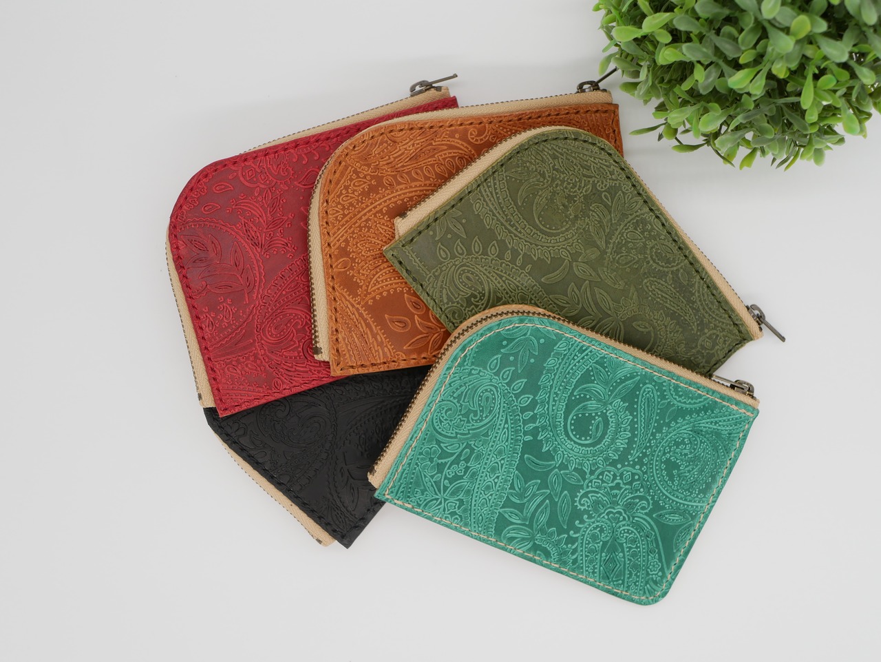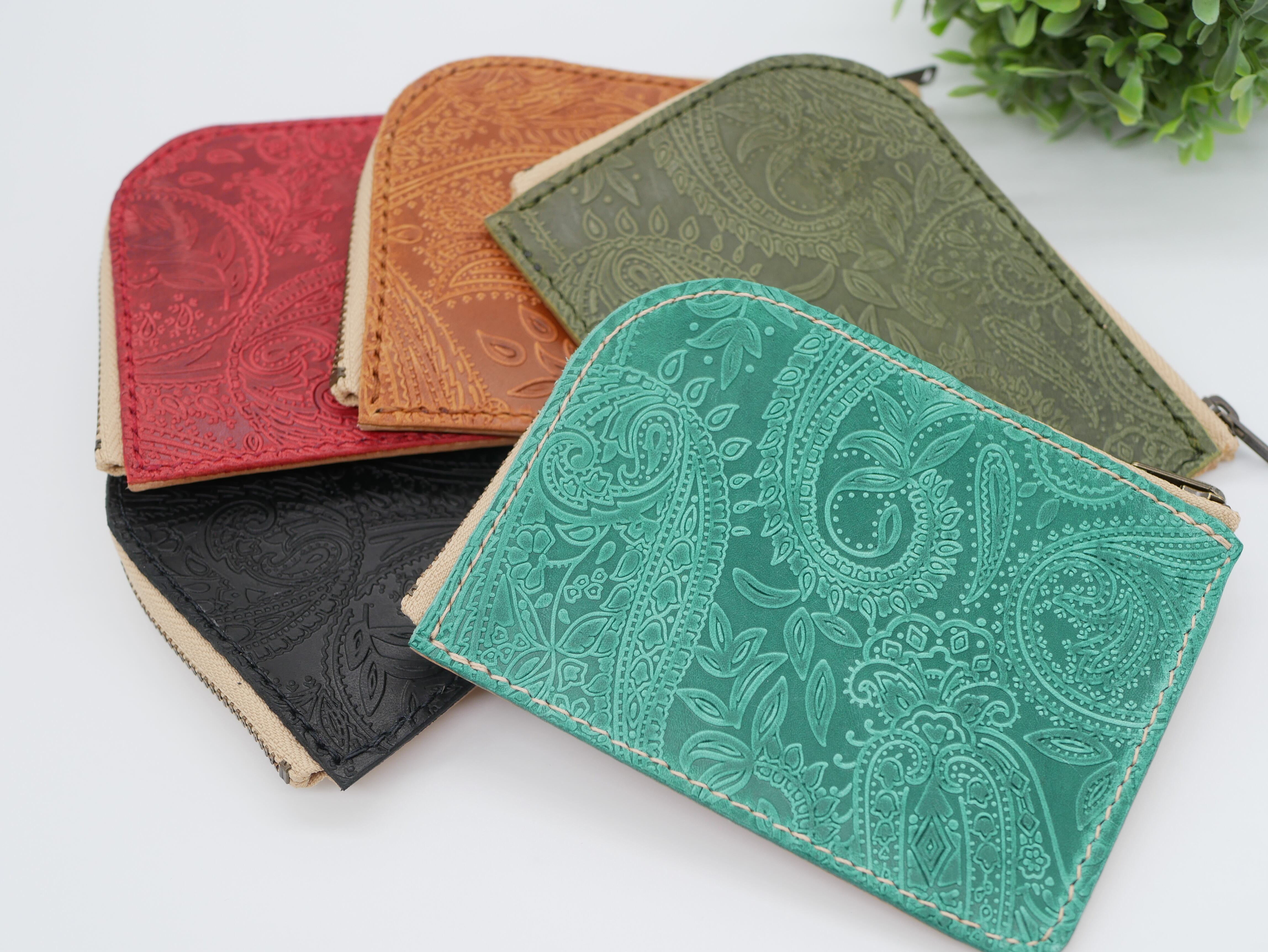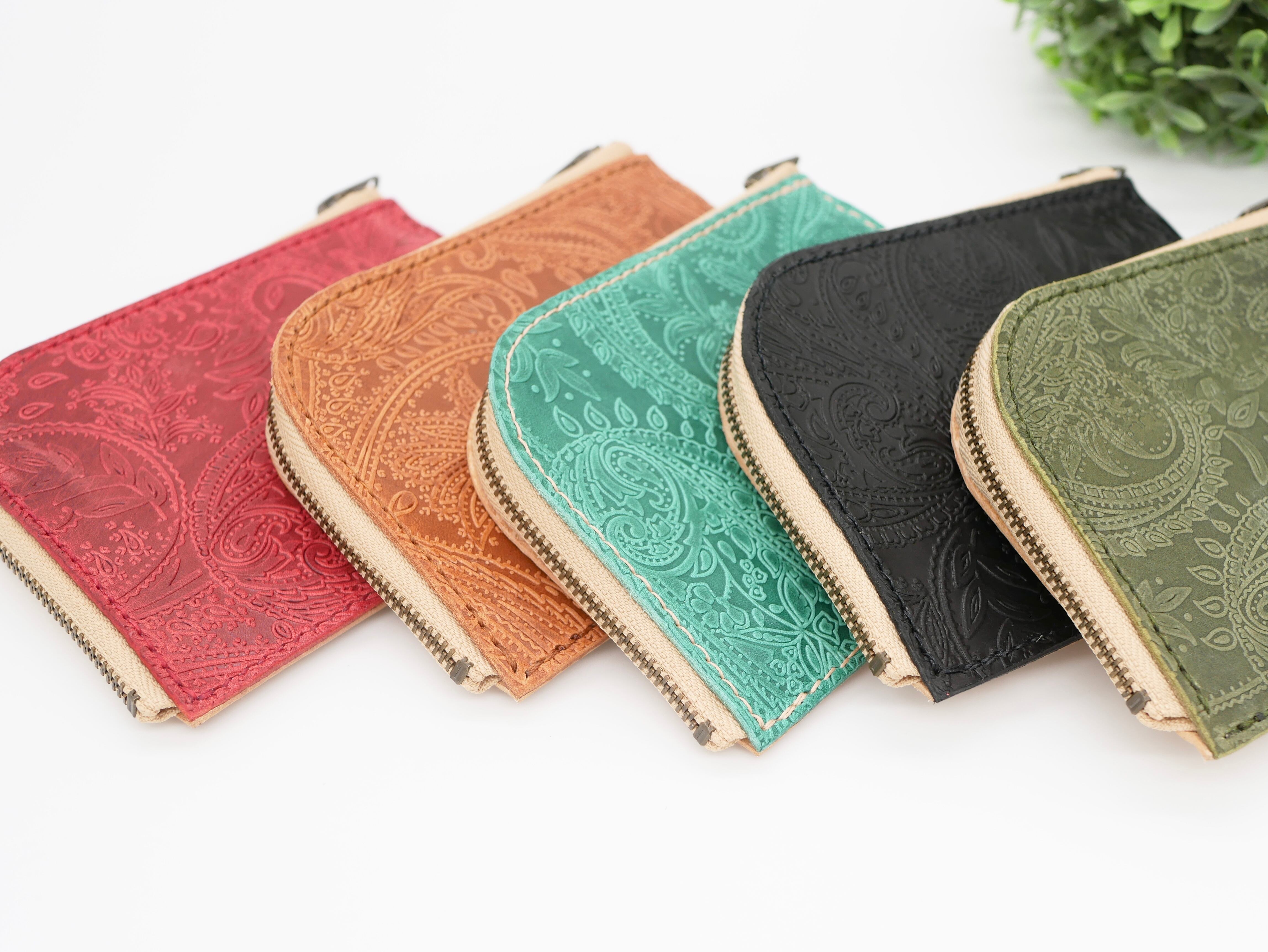 ペイズリー柄が特徴のL字ファスナーミニウォレット。イタリア産の上質な牛革を使用しており、表裏で違う表情を楽しめるデザインが魅力です。コンパクトなサイズながら、カードやお札、小銭入れなど必要なアイテムを収納できます。
