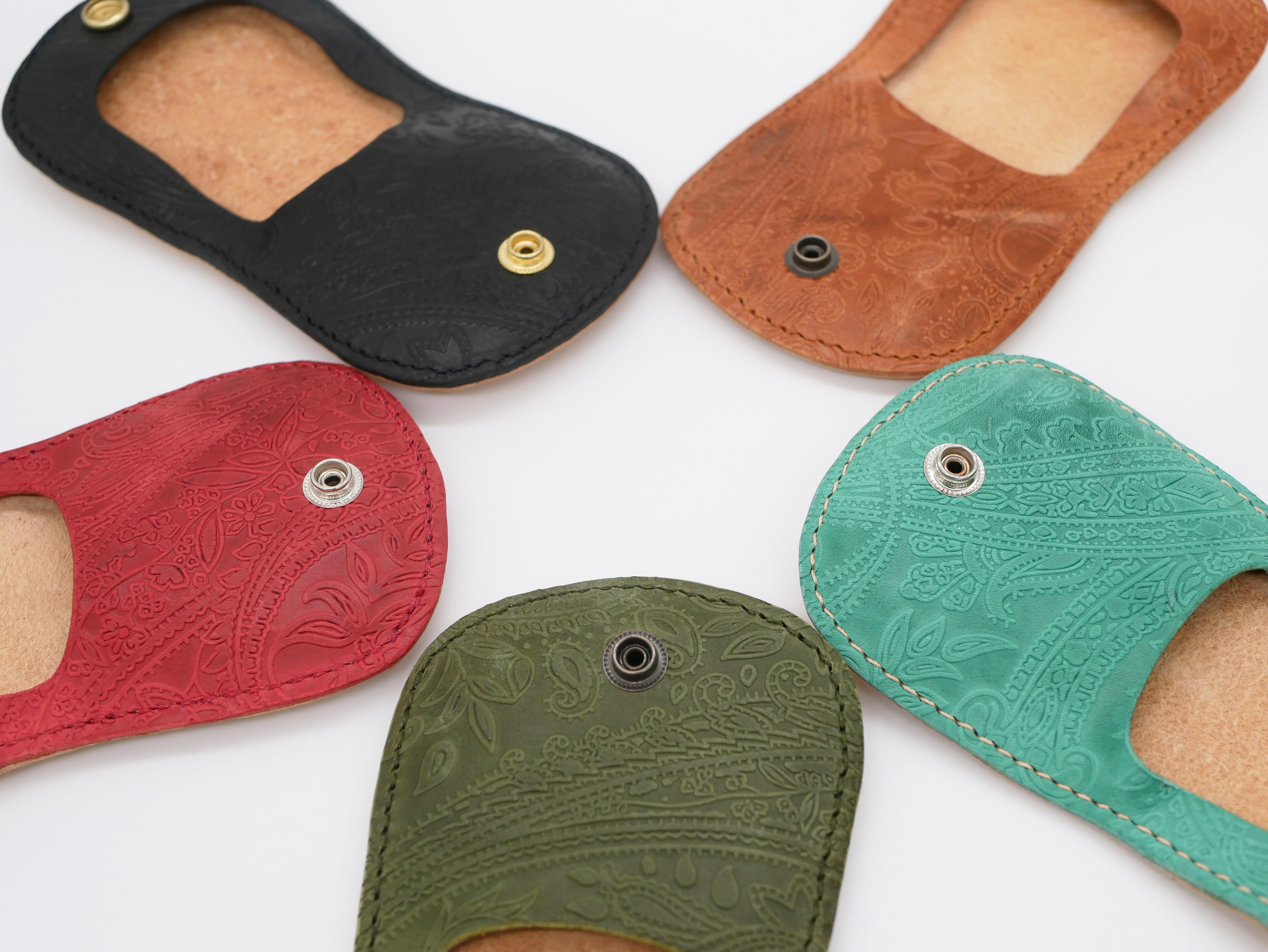 表はナチュラルのイタリアンレザーを使用し、裏地にペイズリー柄のレザーを使用したツートーンのデザインとなっています。閉じている時にペイズリー柄がチラ見するのがおしゃれです。
