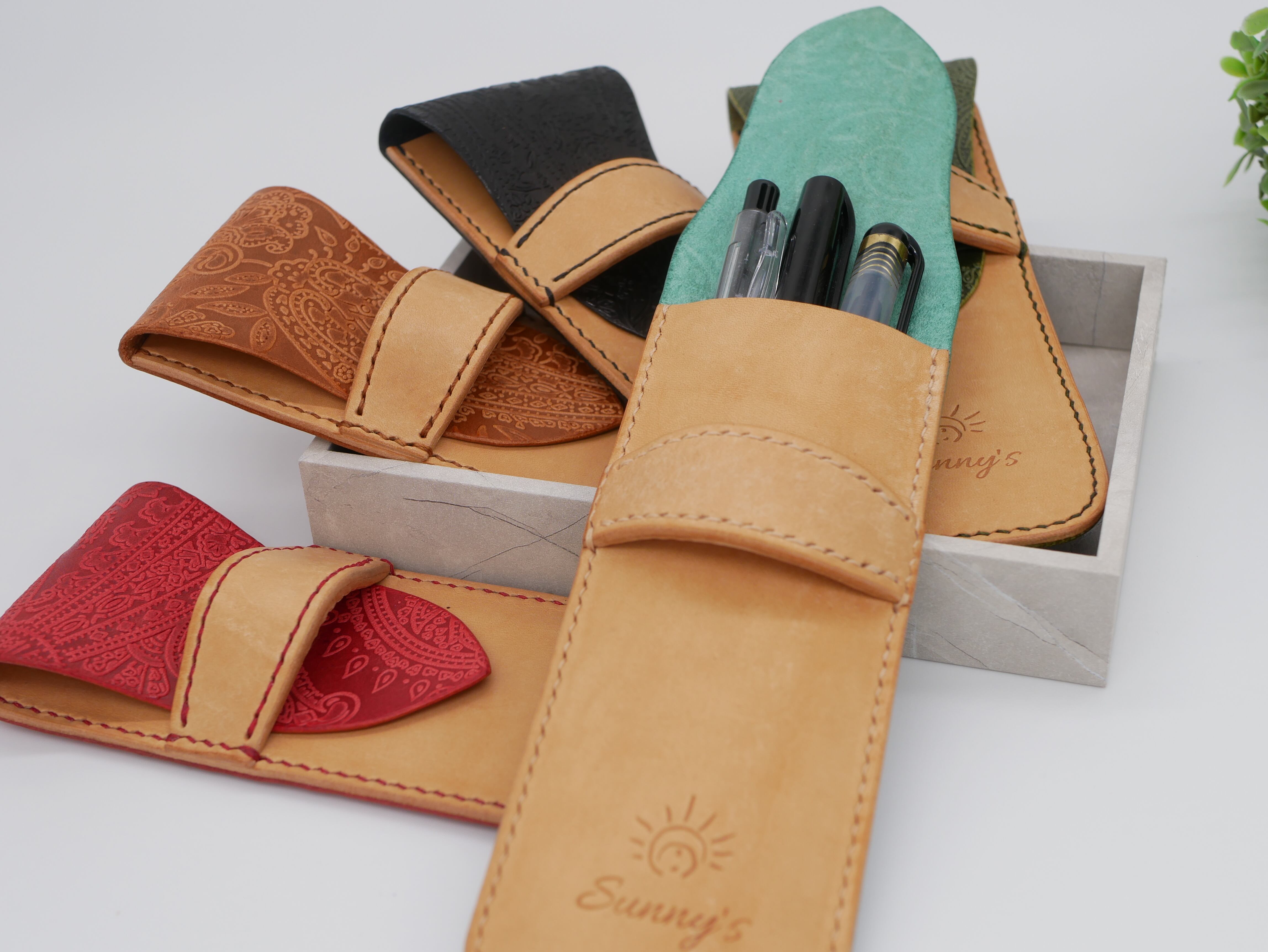 ペイズリー柄レザーで作成したペンケースです。