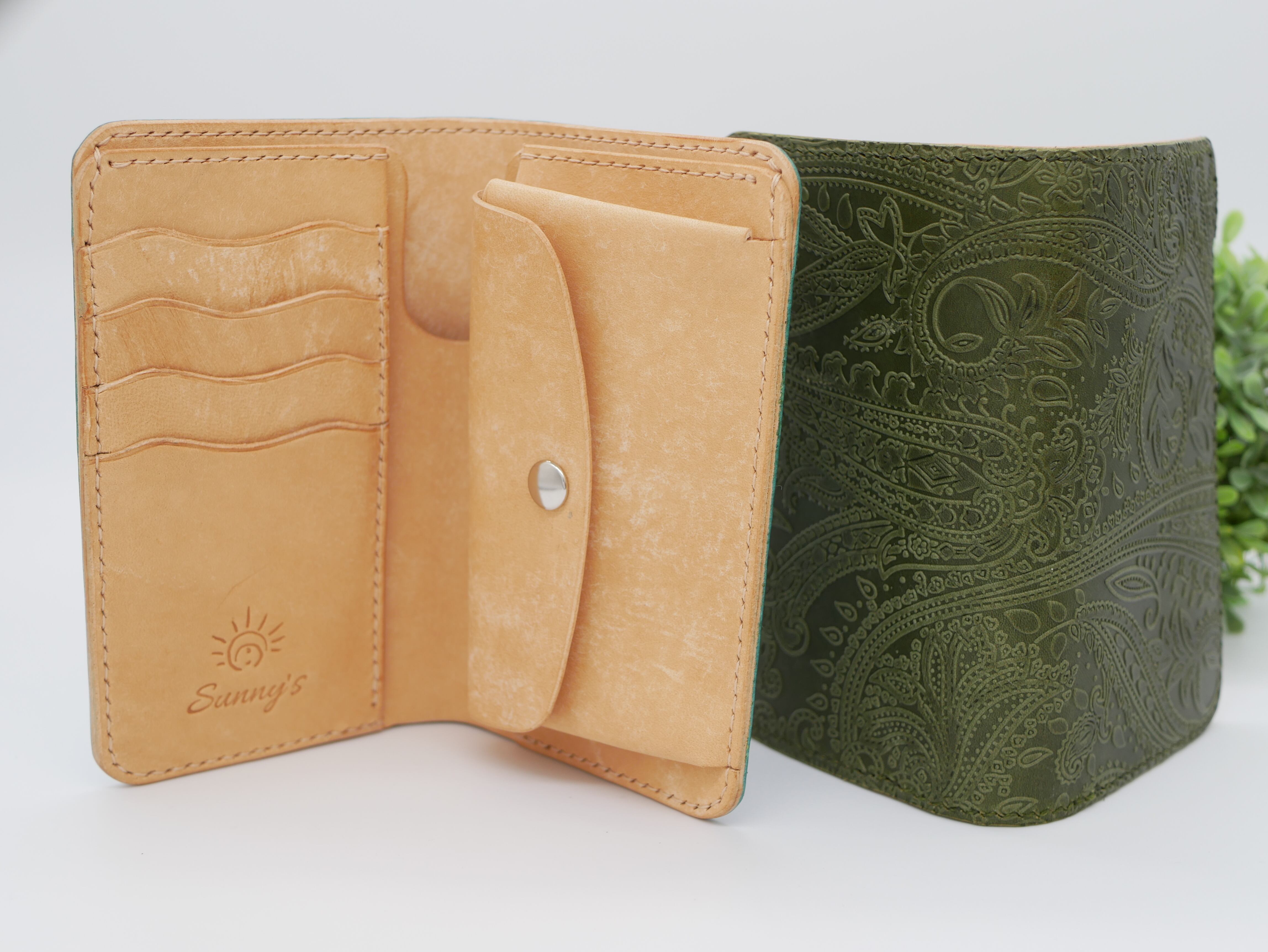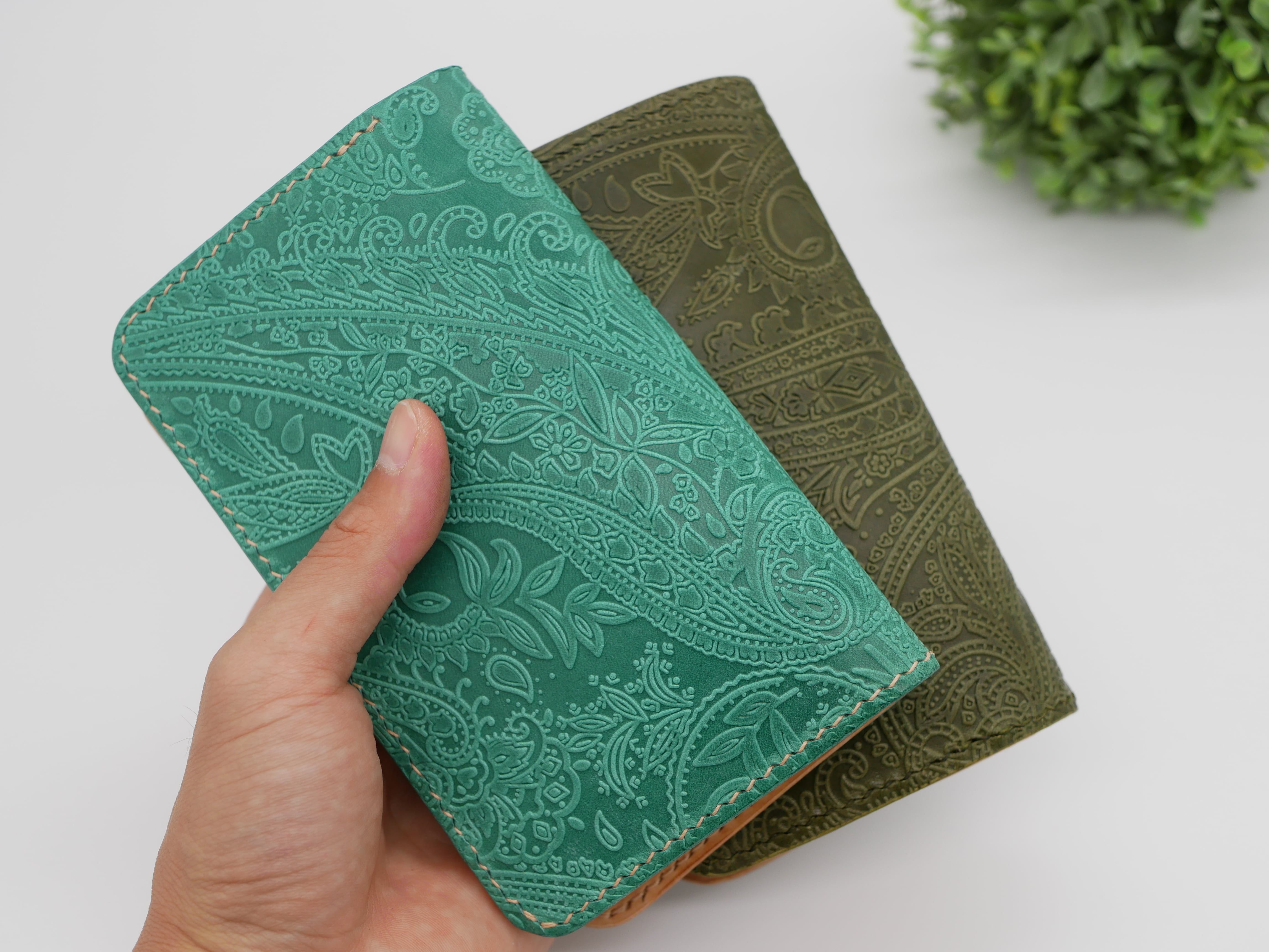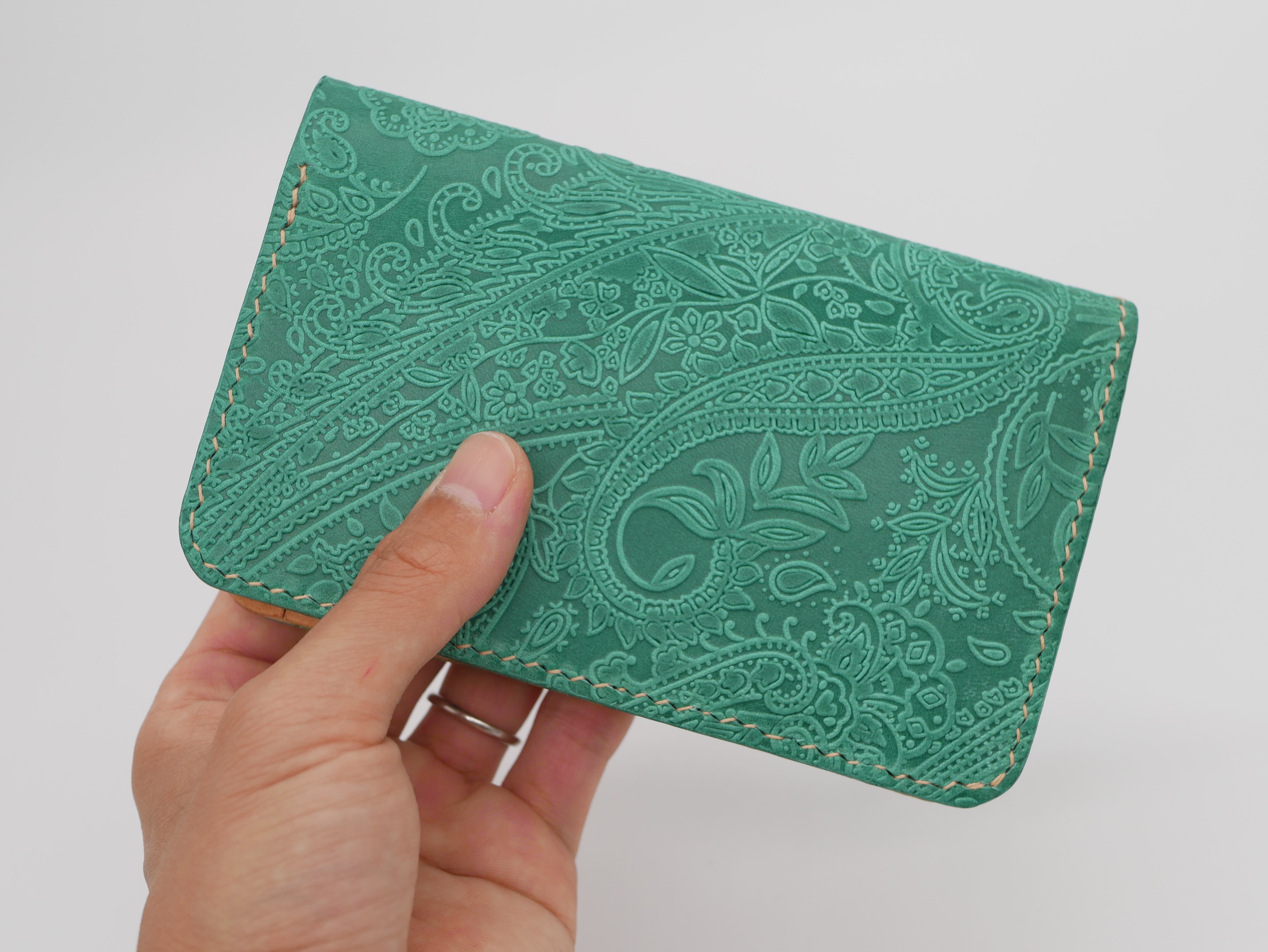 イタリアンレザーにペイズリ柄の型押しを施した革を使用しており、高級感のあるデザインとなっております。
