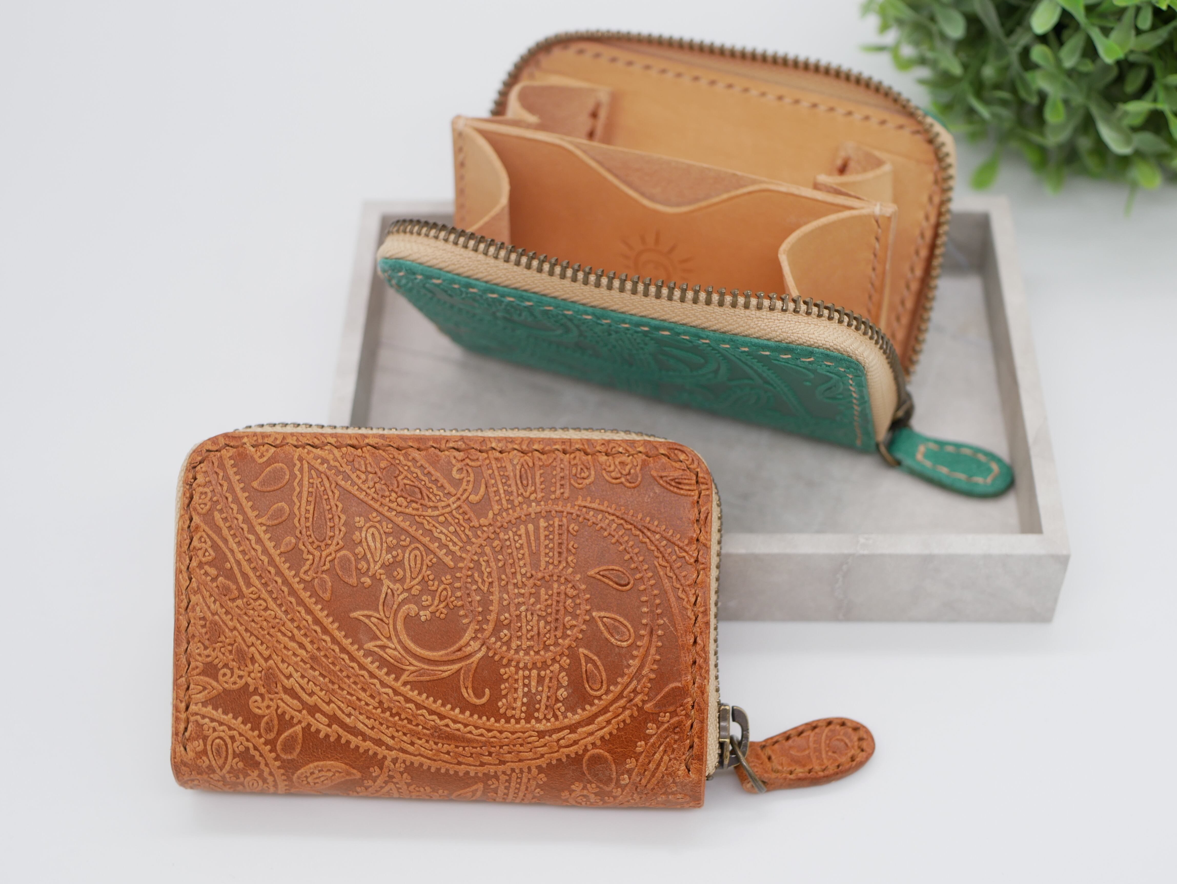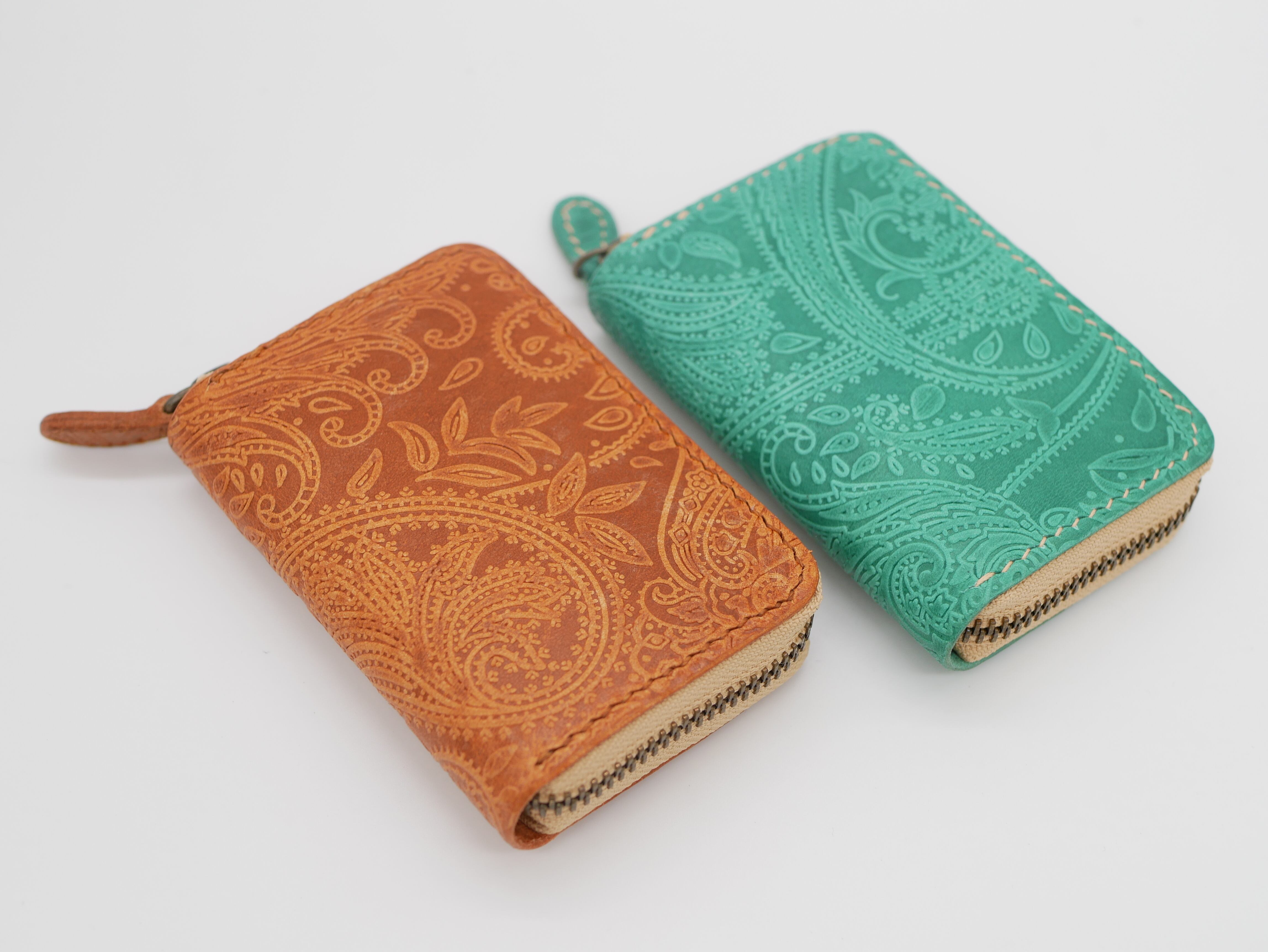 イタリアンレザーにペイズリ柄の型押しを施した革を使用しており、高級感のあるデザインとなっております。