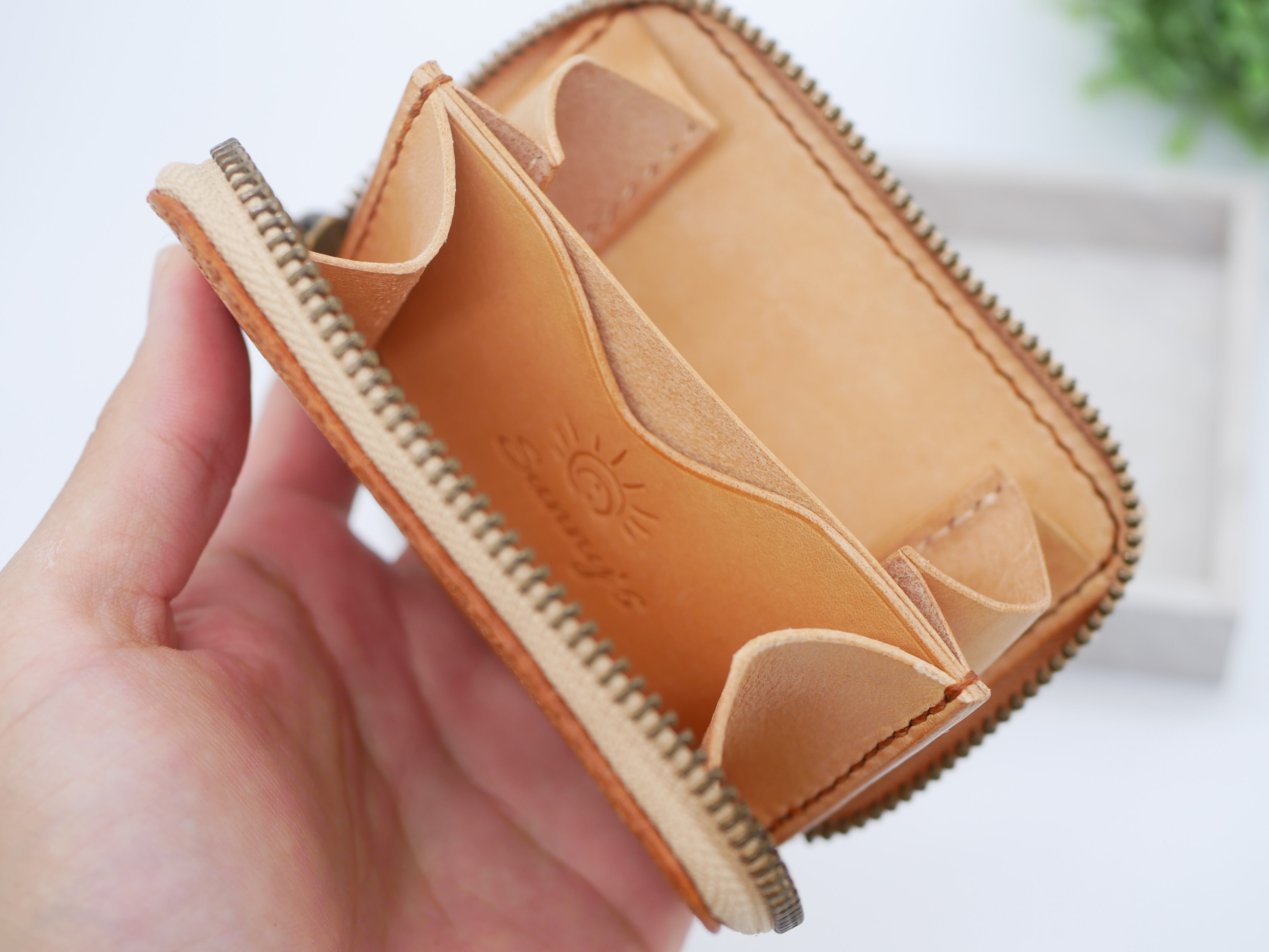 Sunny'sでは、一つ一つ革を切り、穴を空け、縫っております。全工程を手作業で行っているため、一つの製品を製作するのに非常に時間がかかっております。魂を込めて製作した商品を自信をもって販売しております。
