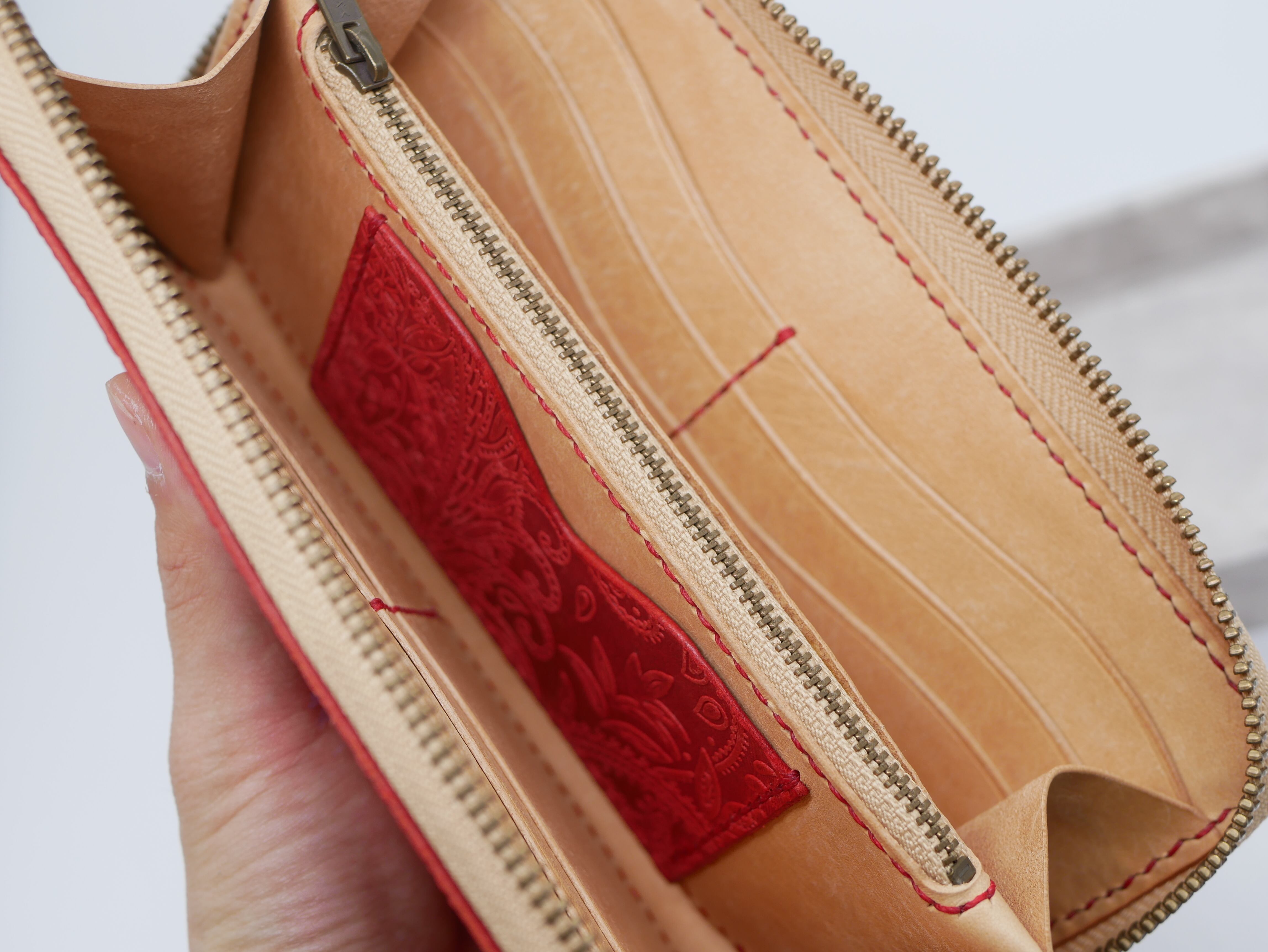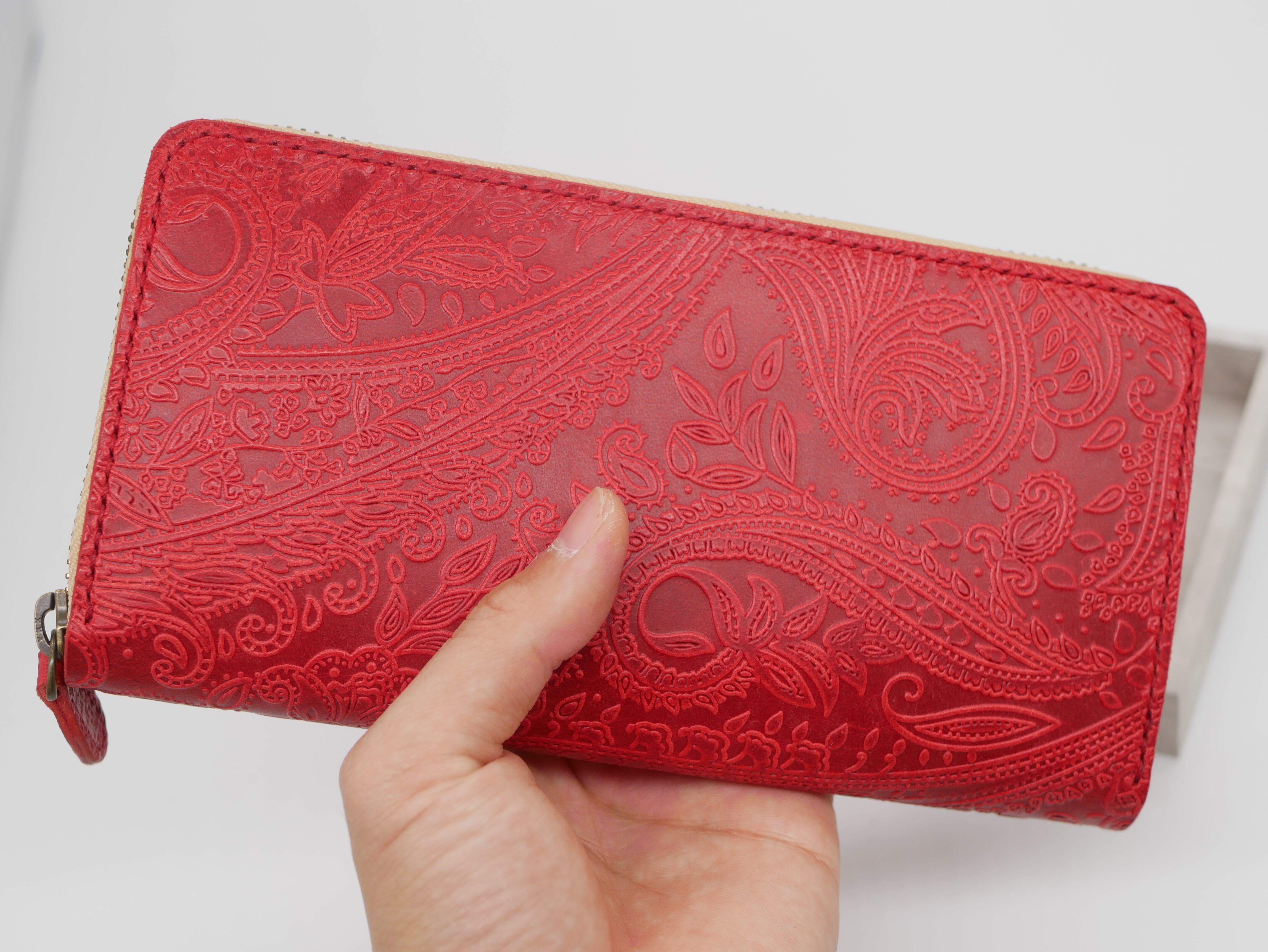 お財布を選ぶときには、デザイン性と機能性のバランスが大切です。本製品は見た目が美しく使い勝手も抜群です。使い込むことで経年変化を楽しめる上質なレザーを使用しているので、長く愛用できます。ペイズリー柄という柄の良さを存分に味わえる一品です。あなたの大切なお財布として選んでいただけたら幸いです。